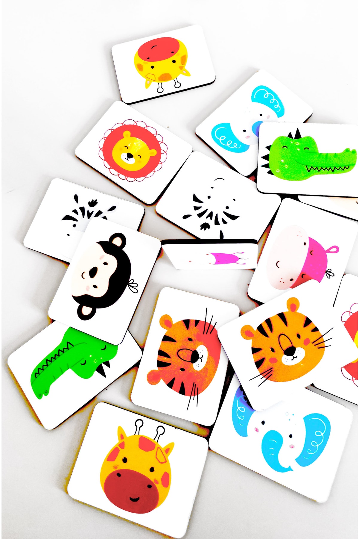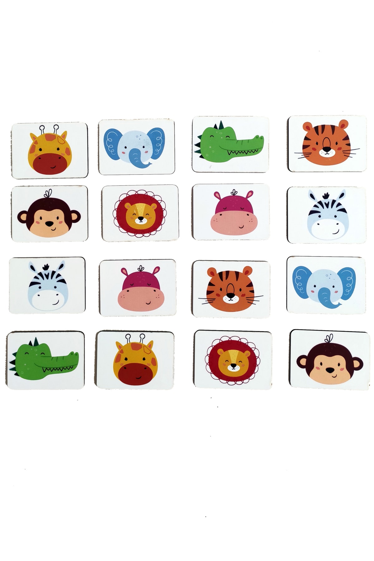 16 Parça Hayvanlar Zeka Kartları Eşleştirme Oyunu Hafıza Kartı Ahşap Eğitici Puzzle Oyuncak