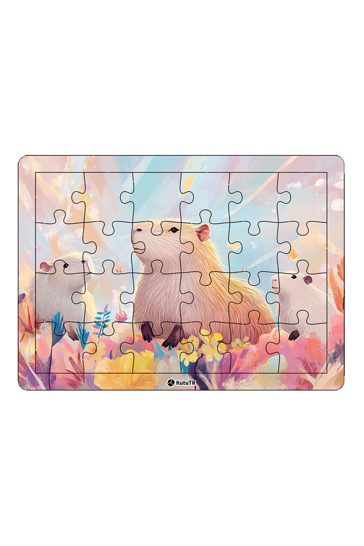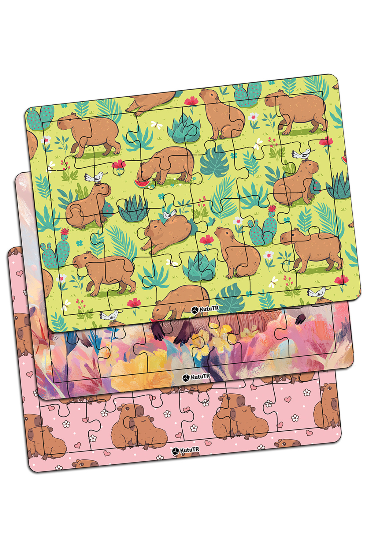 🧩 3’lü Capybara Temalı Ahşap Puzzle Seti | 18x25 Cm | 24 Parça 🧩 Set 6