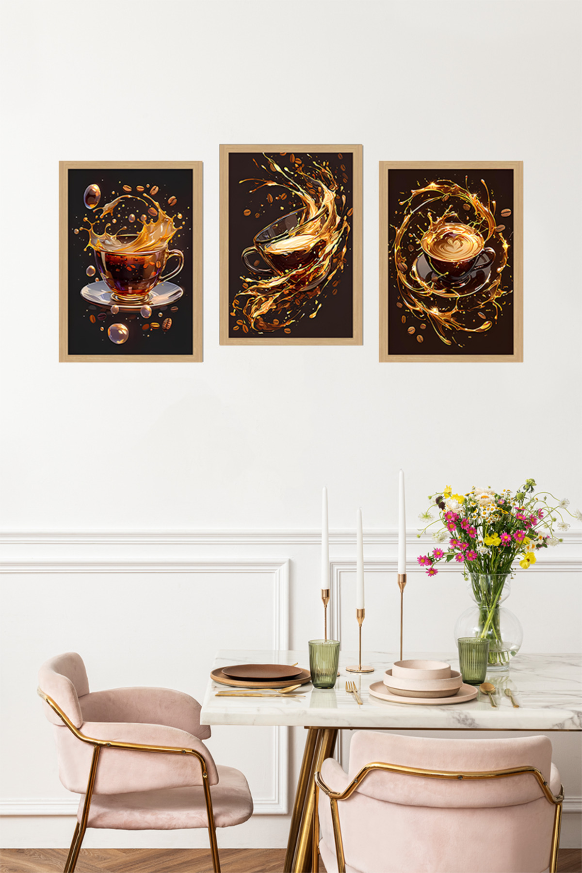 🖼️ 3'lü Çerçeve Görünümlü Kahve Temalı Tablo Seti – 13x17 / 21x30 / 30x40 cm Ebat CRVS1010