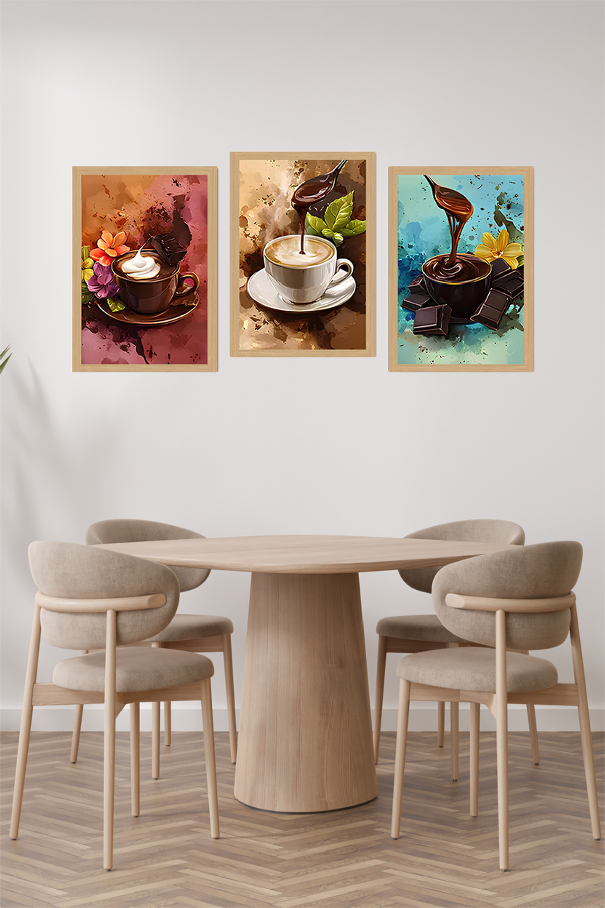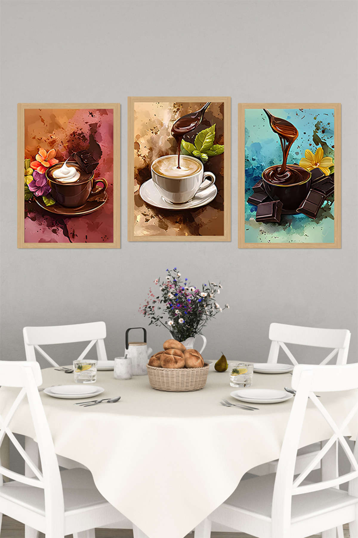 🖼️ 3'lü Çerçeve Görünümlü Tablo Seti – Kahve & Çikolata Temalı CRVS1013