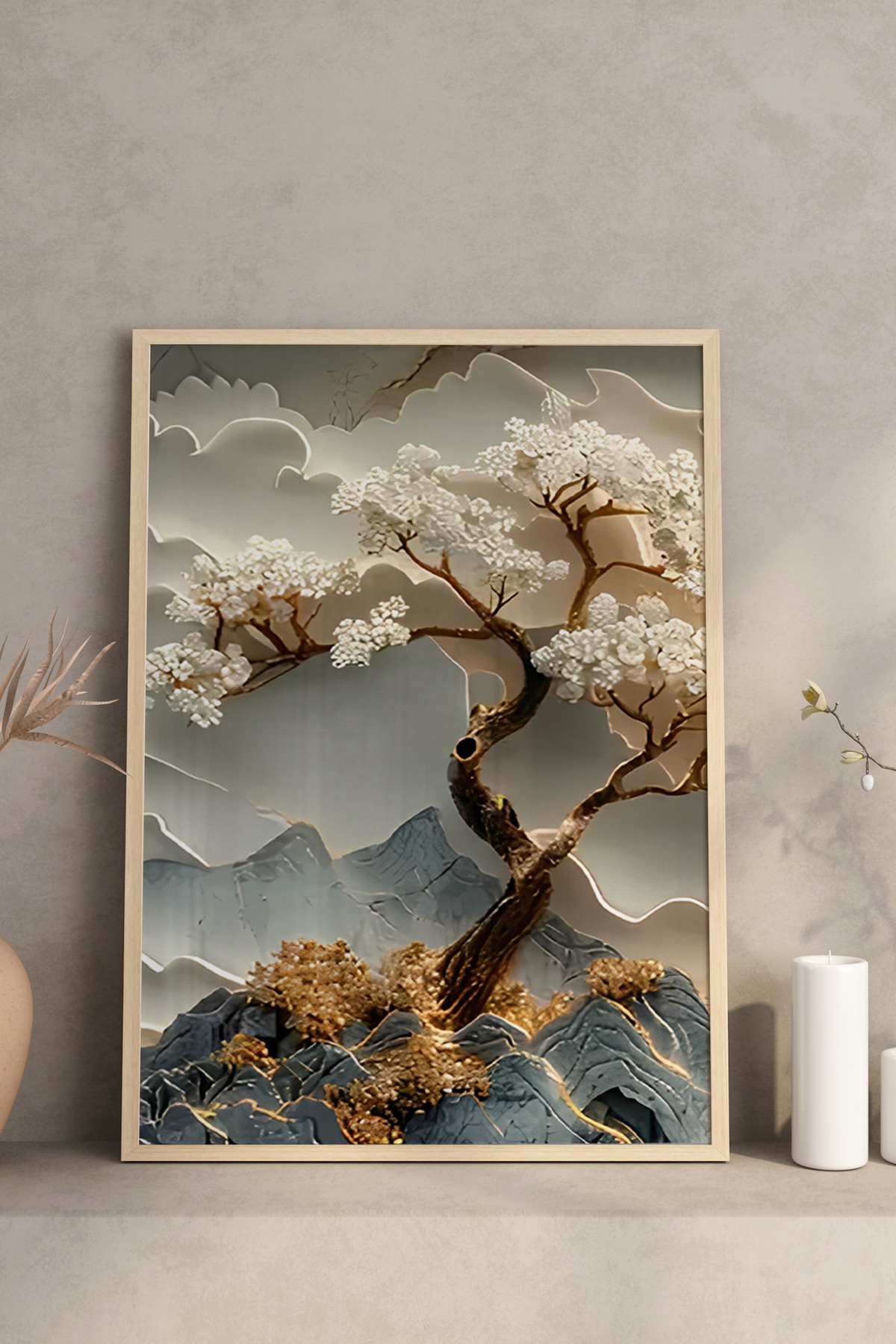 🖼️ 3'lü Çerçeveli Dağ ve Çiçek Temalı MDF Tablo Seti | Yüksek Kalite UV Baskı | CRV1037