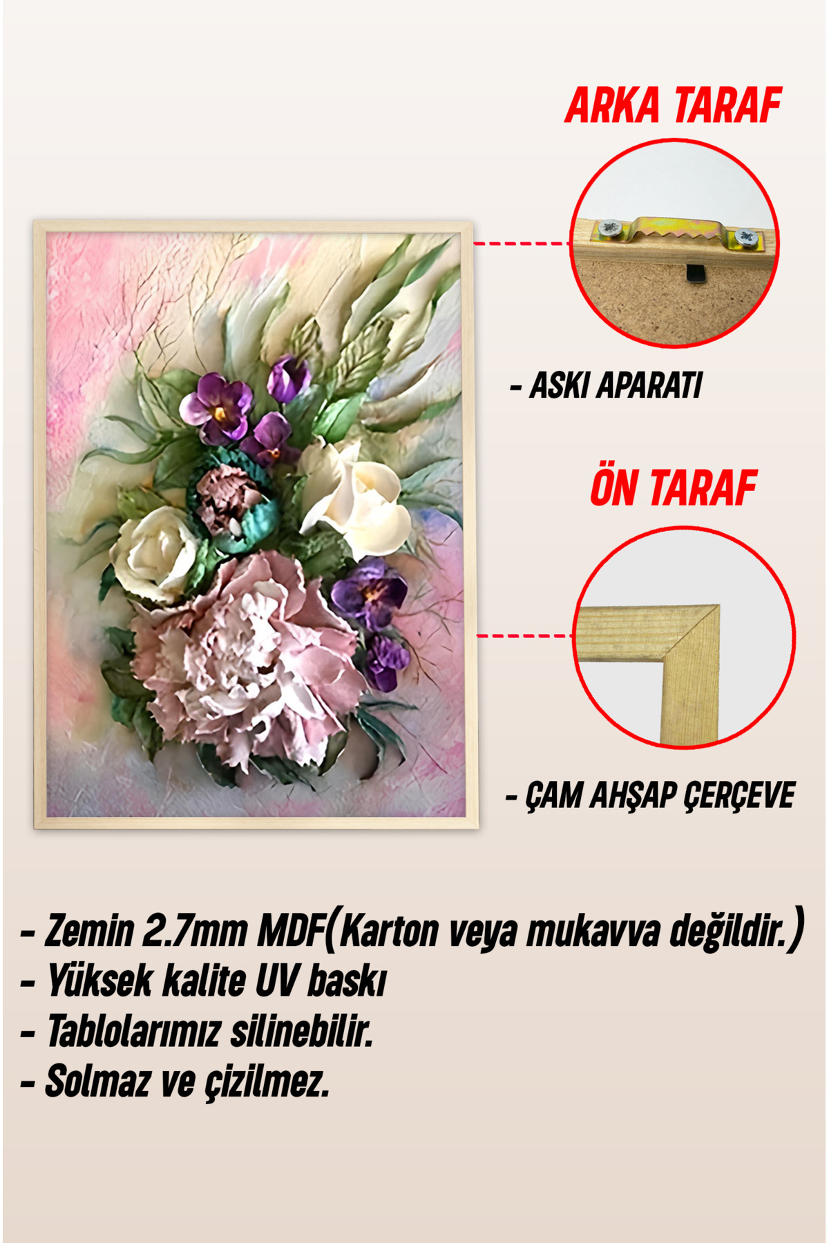 💐 3'lü Çerçeveli Renkli Çiçek Kompozisyonu Tablo Seti –Ahşap Çam Çerçeveli, UV Baskılı🌿 CRV1026