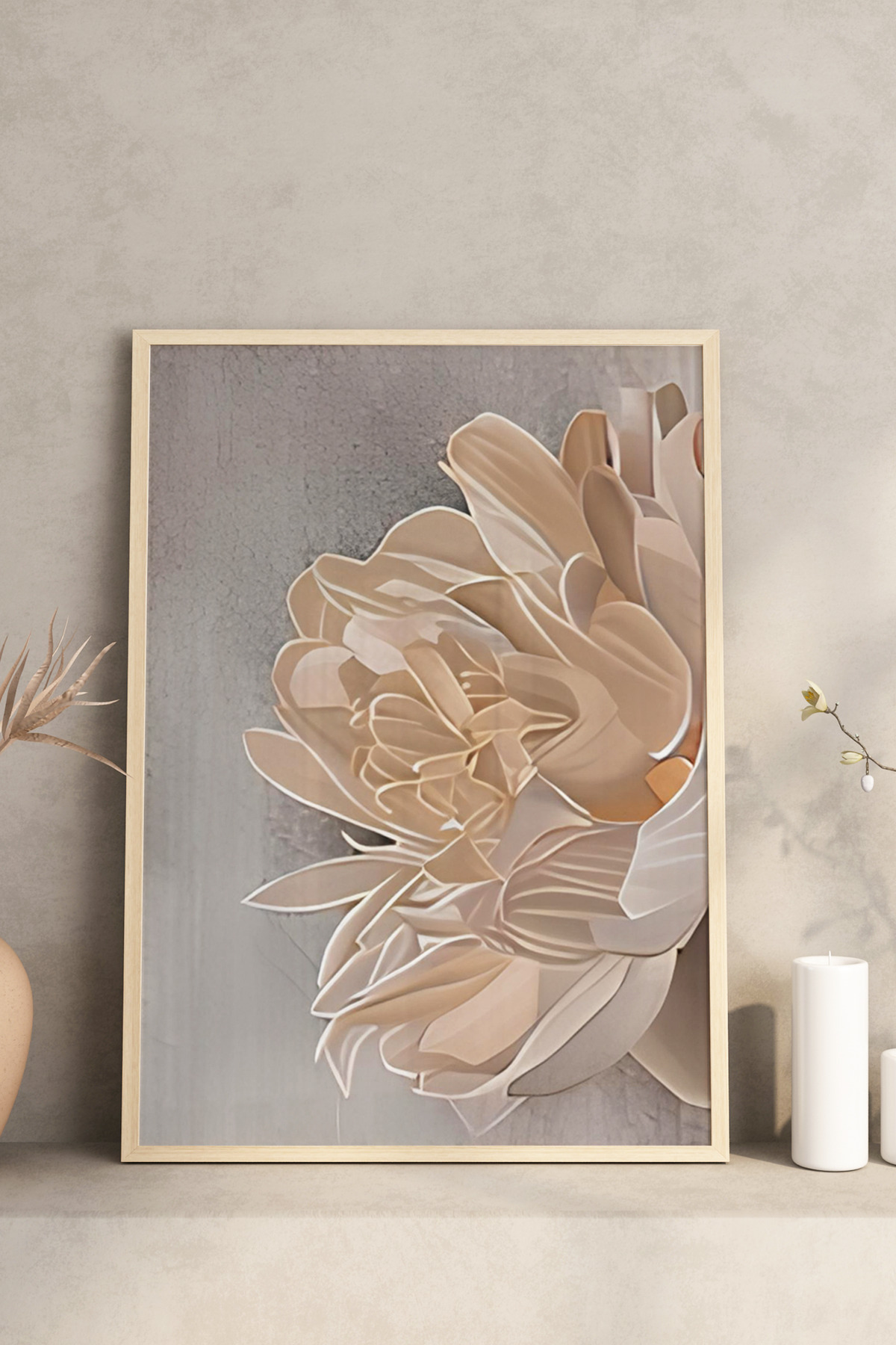 🤍 3’lü Çerçeveli Soft Tonlarda Büyük Çiçek Desenli Tablo Seti 🌿 CRV1156