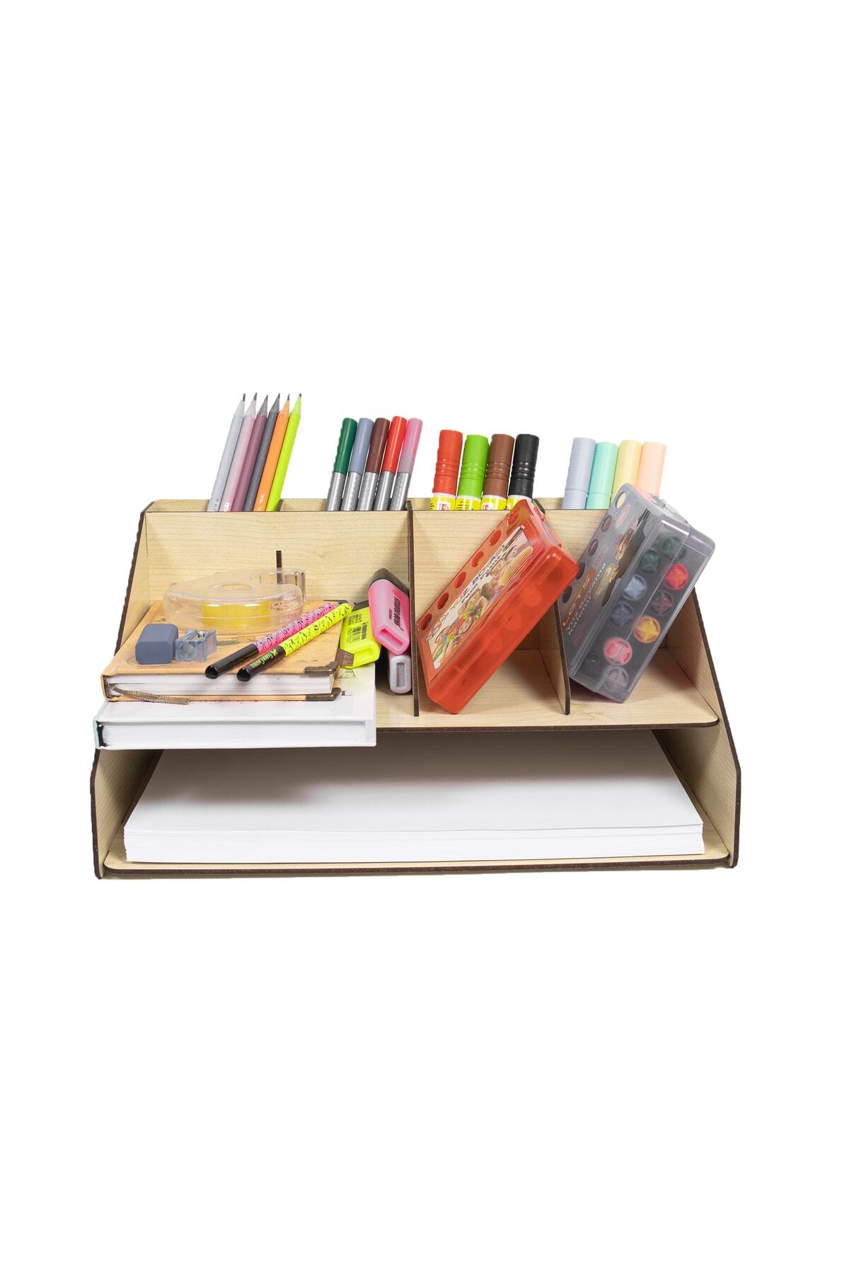 4 Bölmeli Akça Çekmecesiz Masaüstü Organizer Ofis Düzenleyici Hediyelik Kalemlik Montajlı Org17akça