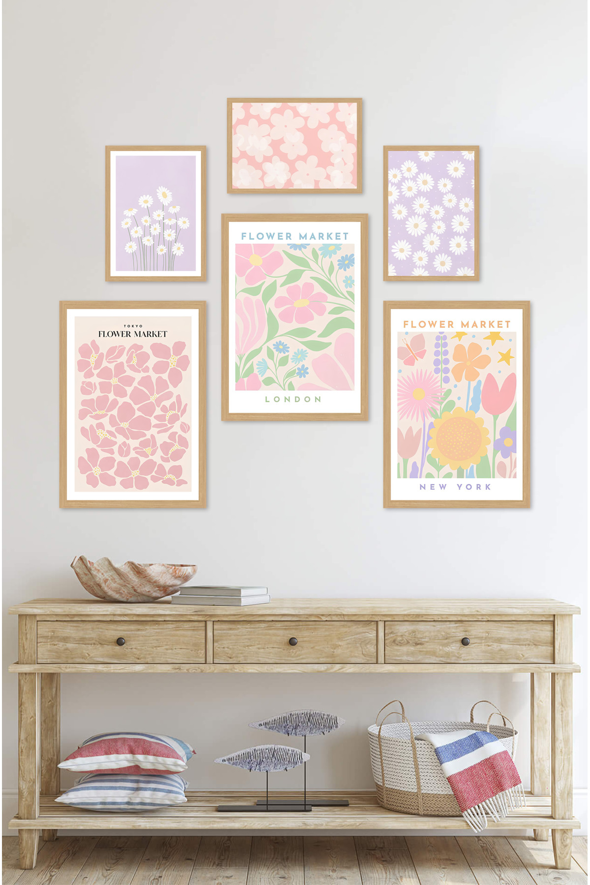 6'lı Ahşap Model 3 Adet 21x30 ve 3 Adet 13x17 Tablodan Oluşan Set Çerçeve Görünümlü 3064