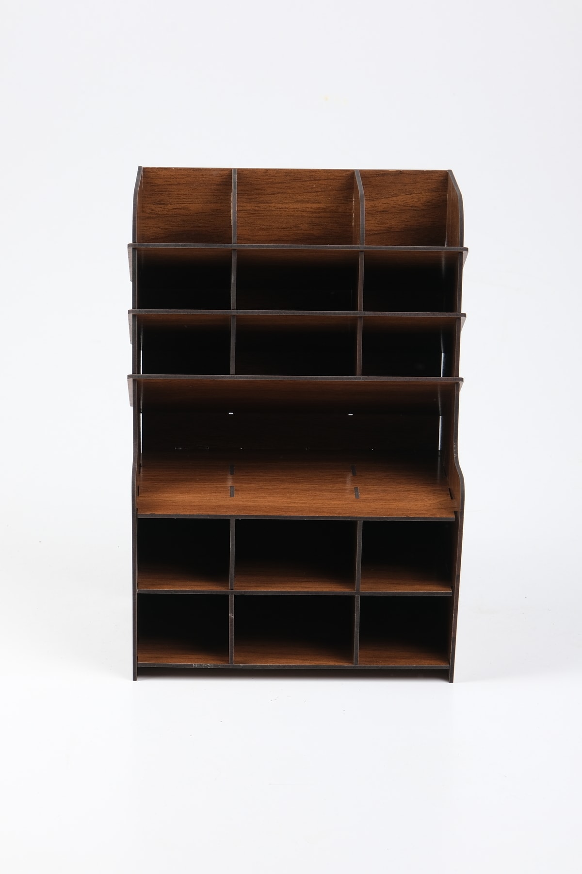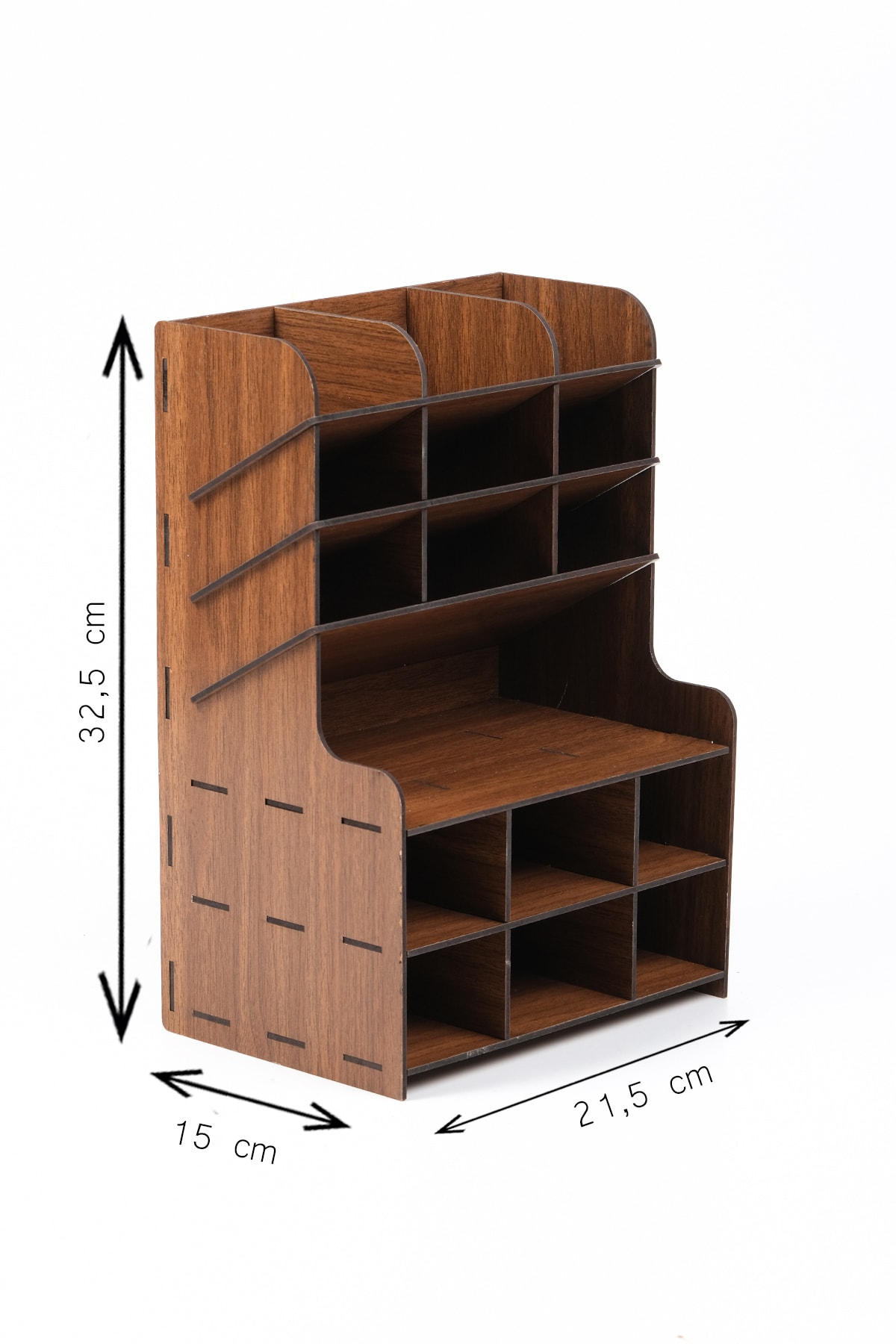 9 9 Raflı Masaüstü Kalemlik Organizer (CEVİZ) Ev Ve Ofis Malzemeleri Saklama Rafı Montajı Yapılmış