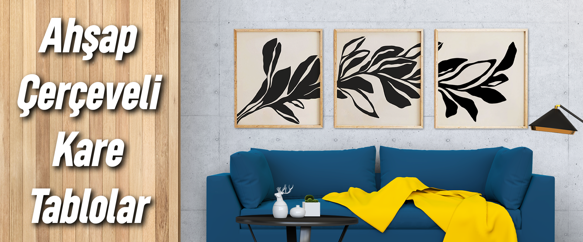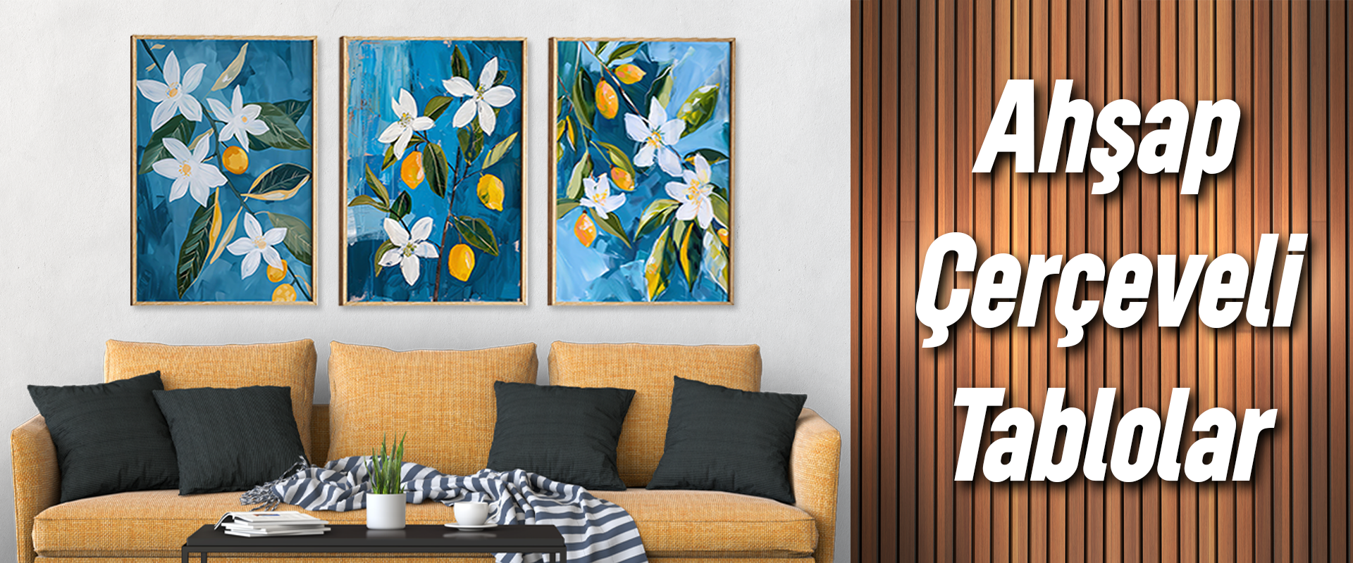Ahşap Çerçeveli Mdf Kare Tablo Seti Salon Ve Oturma Odası Için KR4008