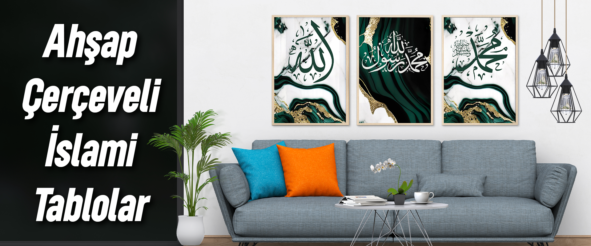 Ahşap Çerçeveli Mdf Tablo Seti İSLAMİ Salon Ve Oturma Odası İçin ÇT3080