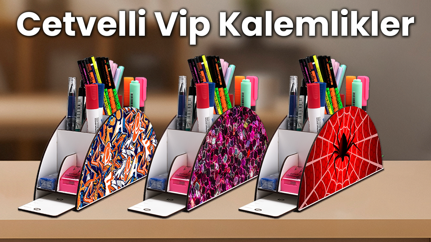 Ahşap Vip Islam Gökkuşağı Cetvelli Masaüstü Kalemlik Organizer Montajlı Kutulu