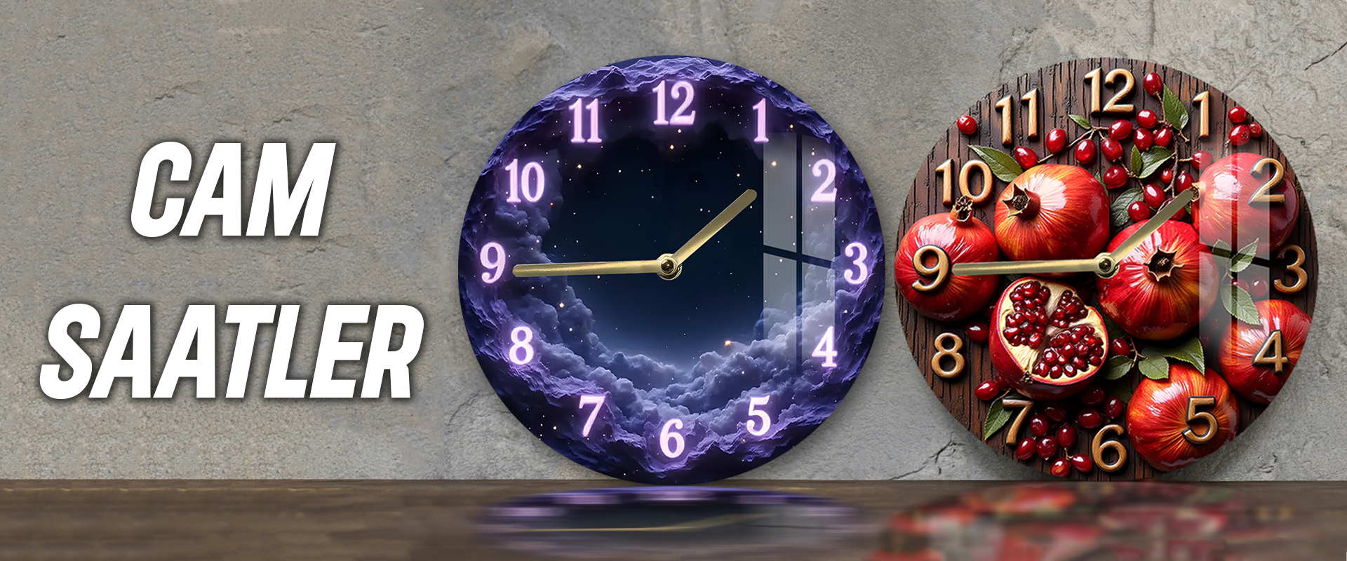 🕰️ Nar Temalı 3D Görünümlü MDF Duvar Saati – 33 cm | UV Baskılı Modern Tasarım SDW345