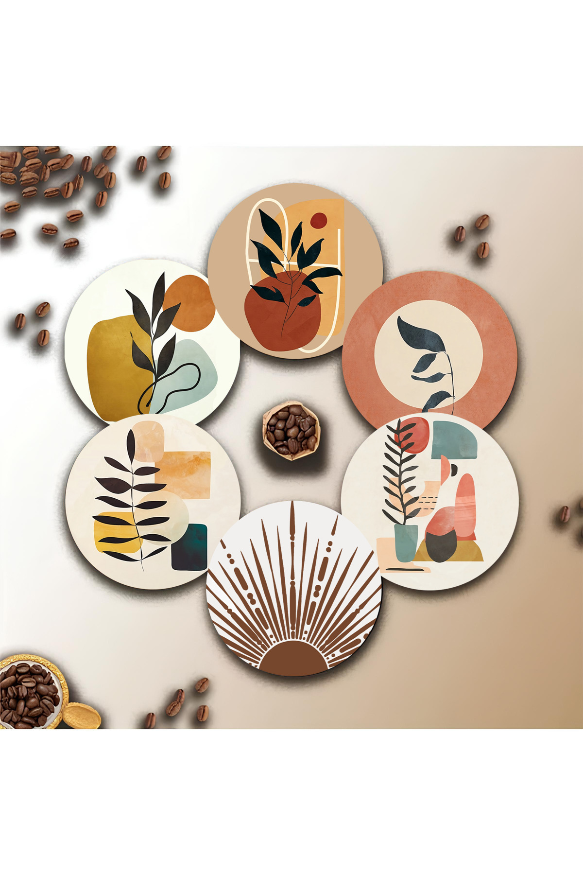 Abstrakt Yaprak Desenli 6'lı MDF Çay & Kahve Altlığı Seti BRD-026