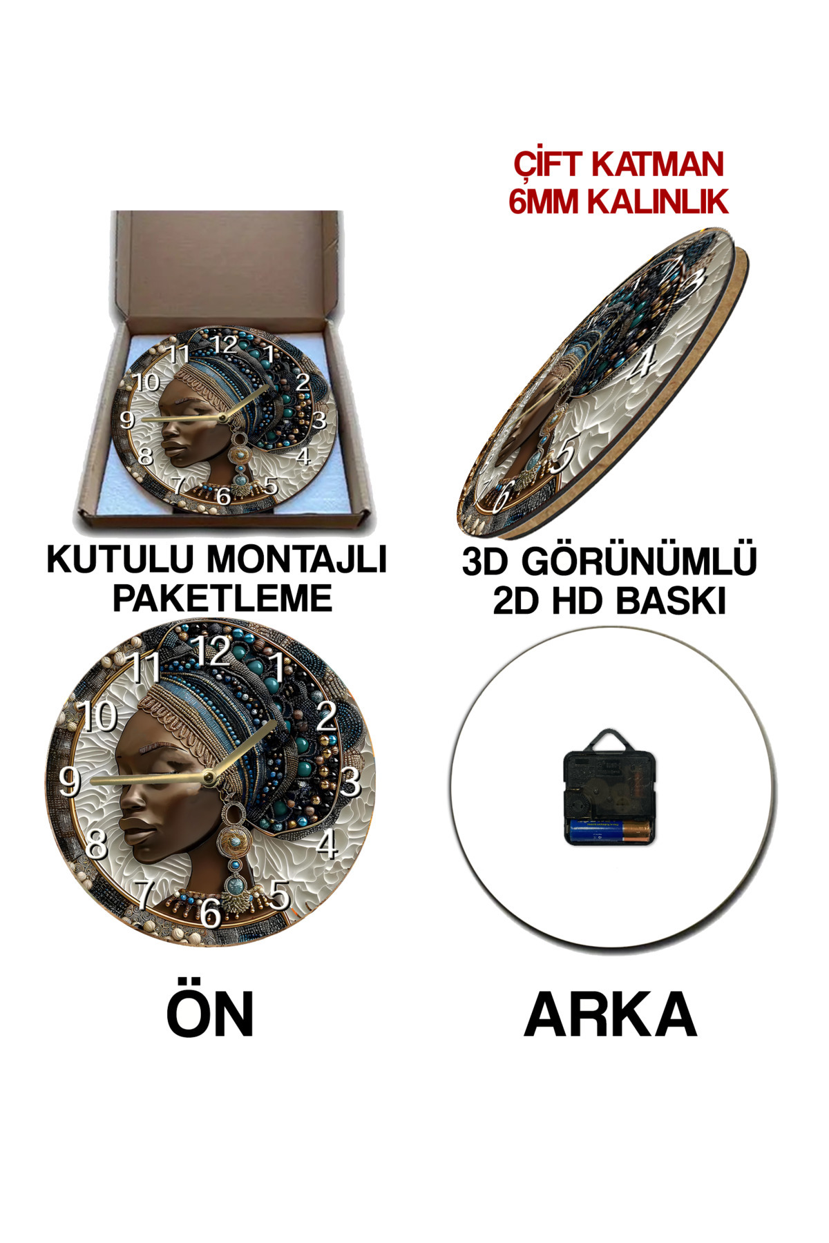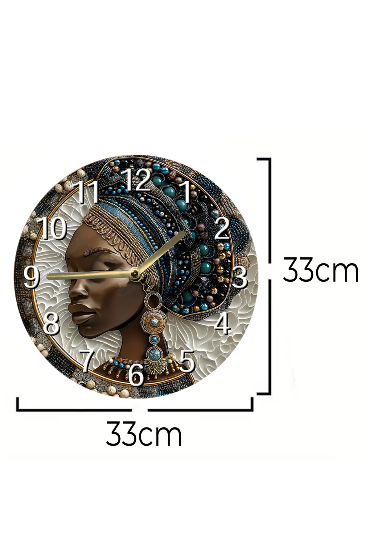 🖤 Afrikalı Kadın Portreli Çift Katmanlı MDF Saat | 33 cm | Sanatsal Duvar Dekoru Sdw358