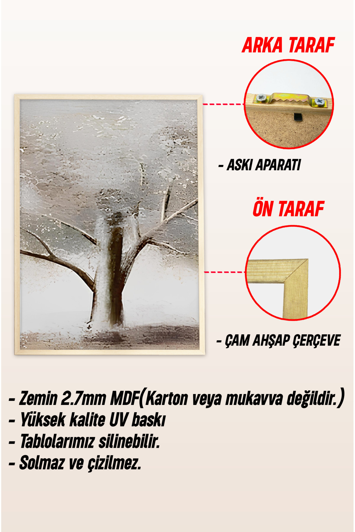 🌿 Ağaç Temalı 3'lü MDF Çerçeveli Tablo Seti - Doğanın Sakinliği Evinizde 🌿 CRV1176