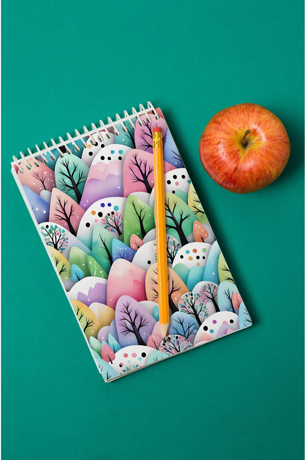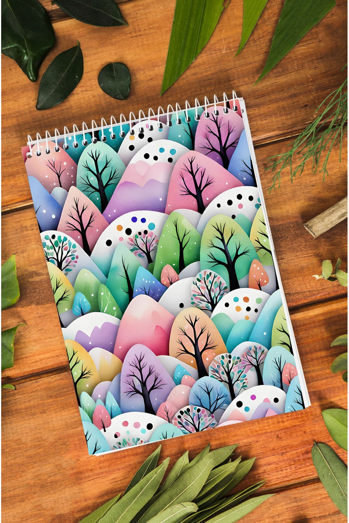 Ağaçlar Desenli Ahşap Mdf Kapaklı 80 Yaprak Çizgili 14x21 Vip Bloknot 70gr/m2 Ç-OB08