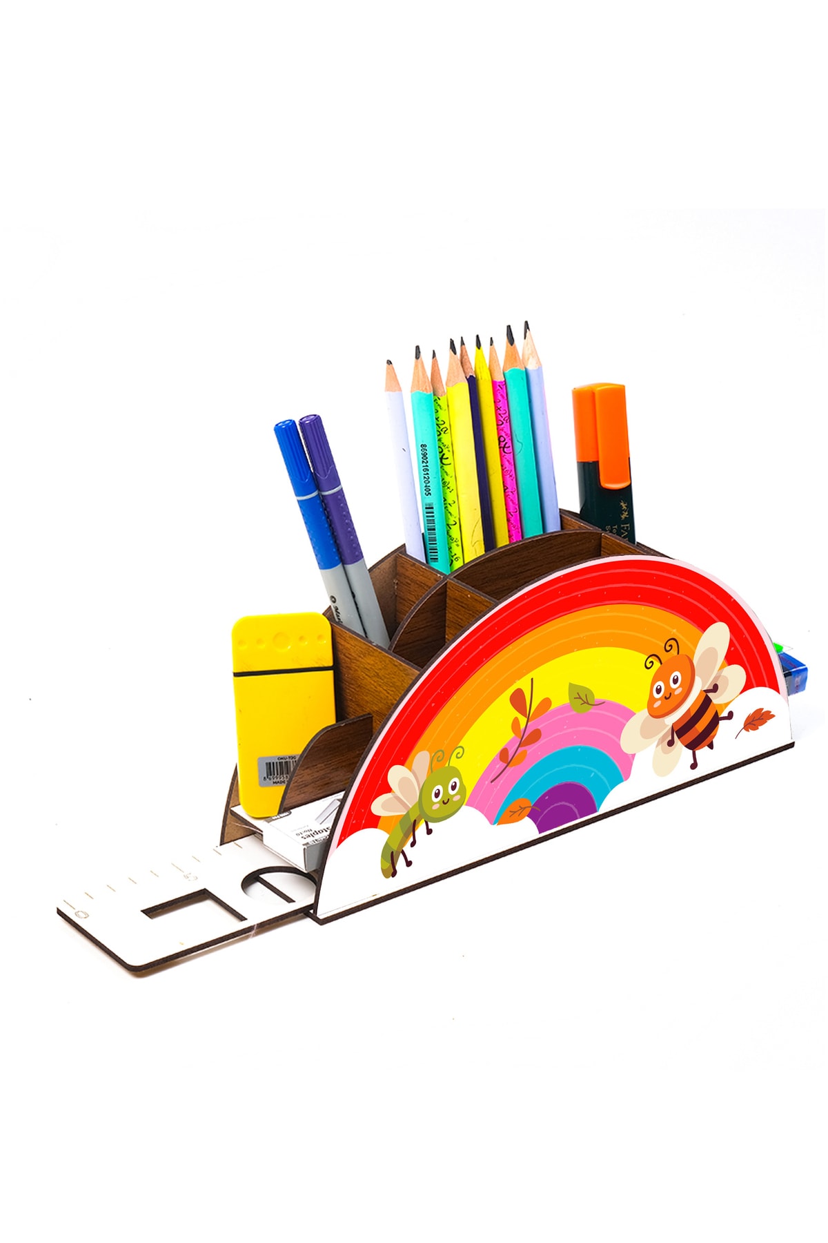 Ahşap Arılar Gökkuşağı Cetvelli Masaüstü Kalemlik Kutu Çocuklar Için Organizer Gk136