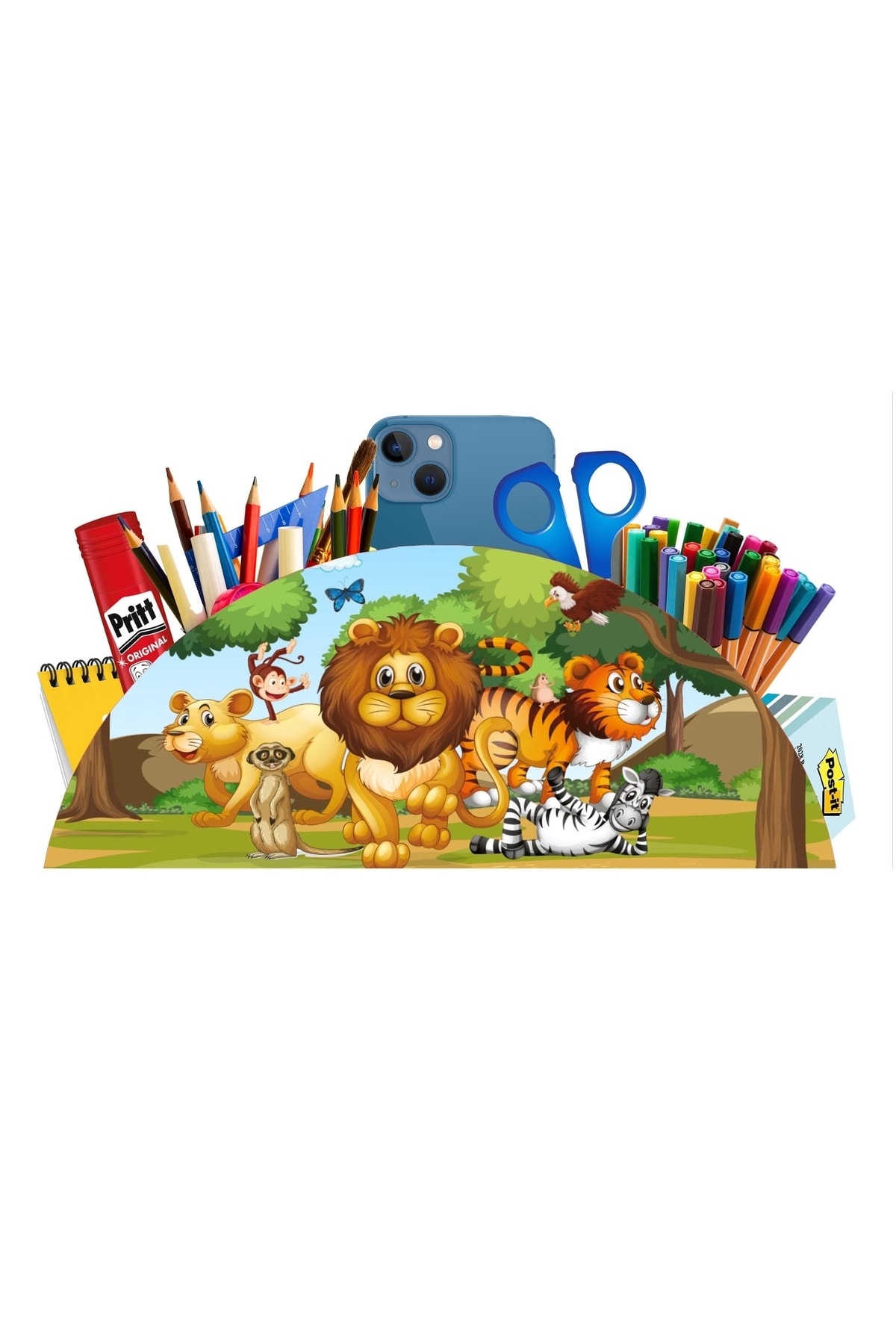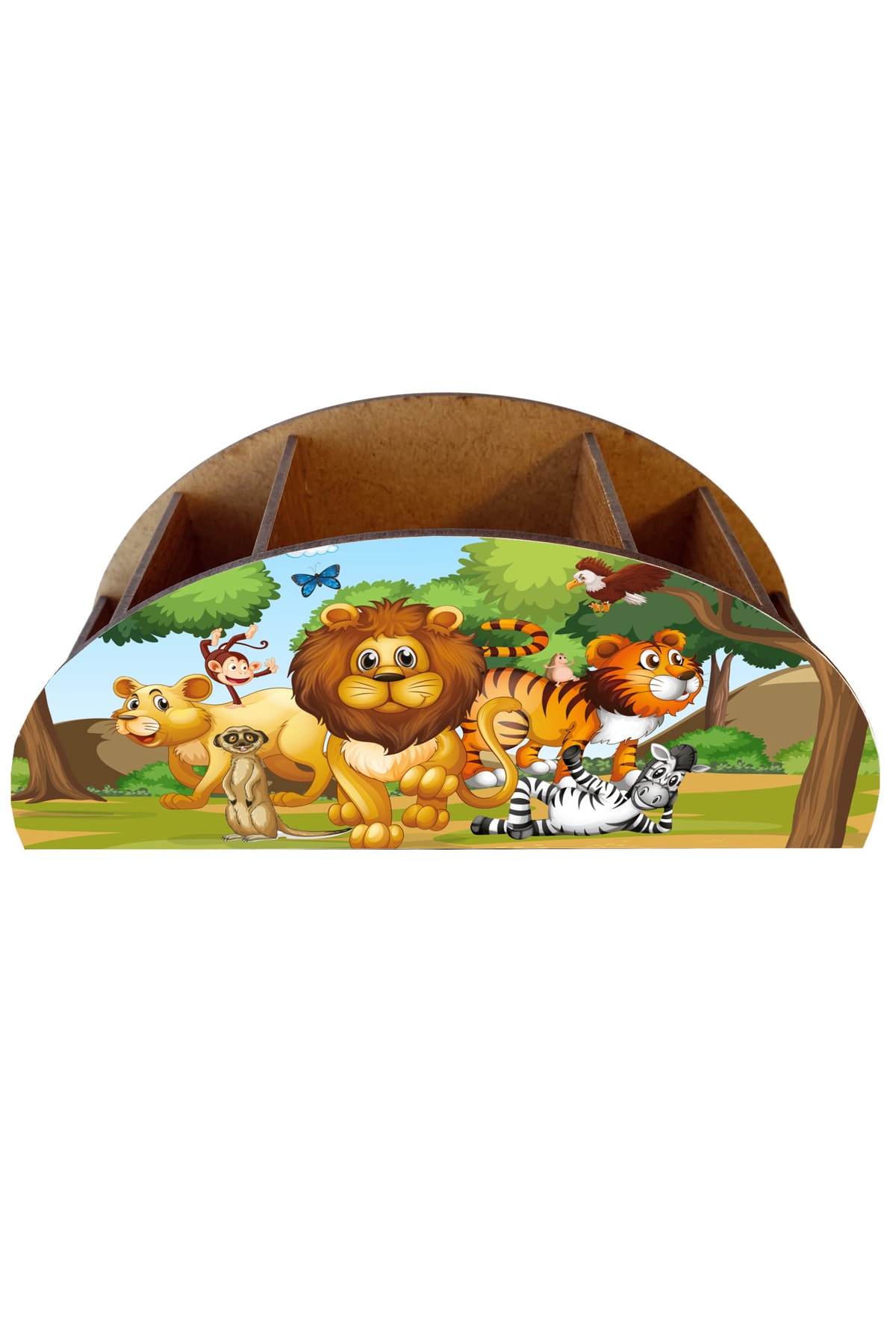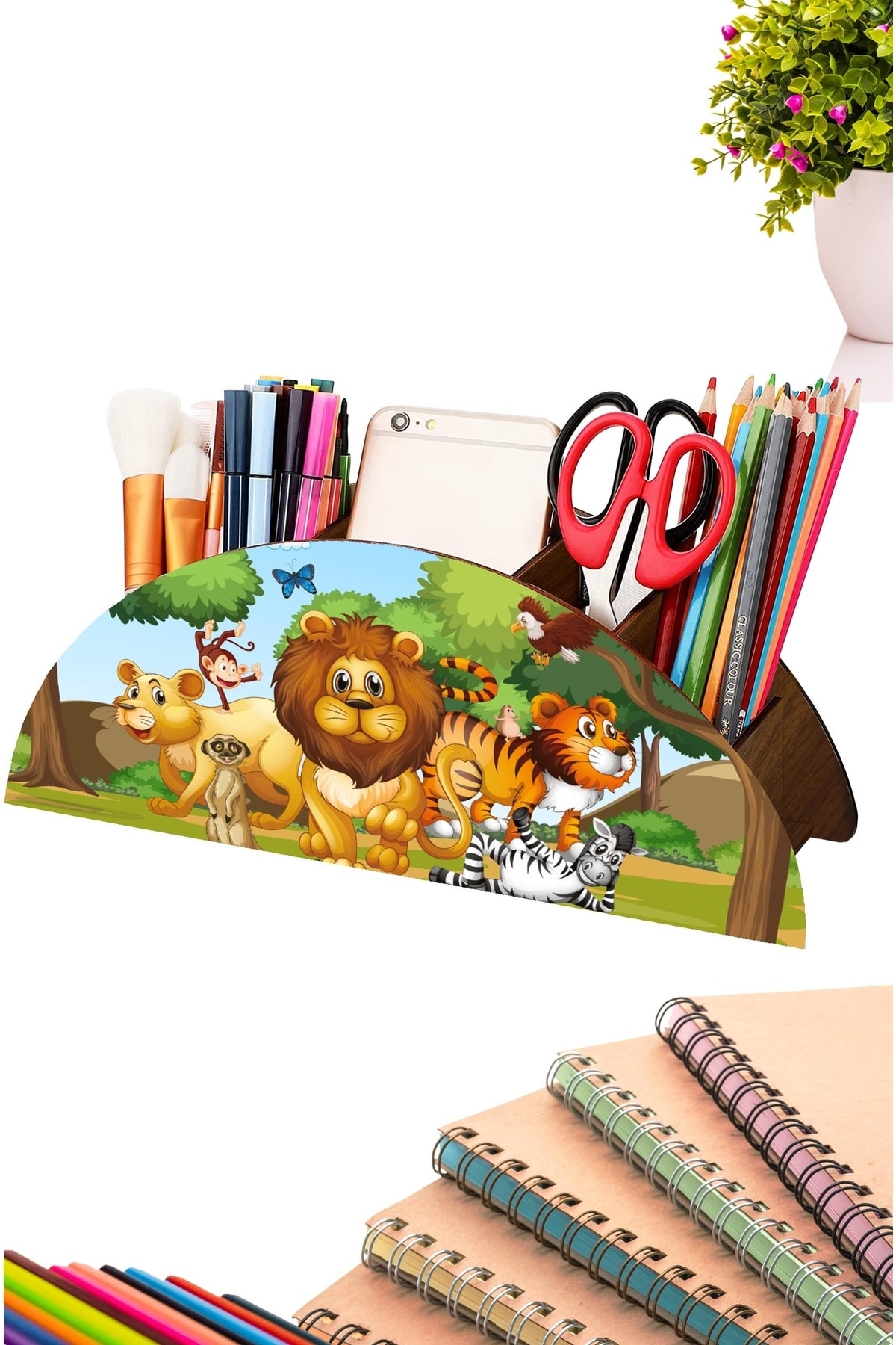 Ahşap Aslan Ve Ekibi Orman Gökkuşağı Kalemlik Çocuklar Için Masaüstü Kalem Kutusu Organizer