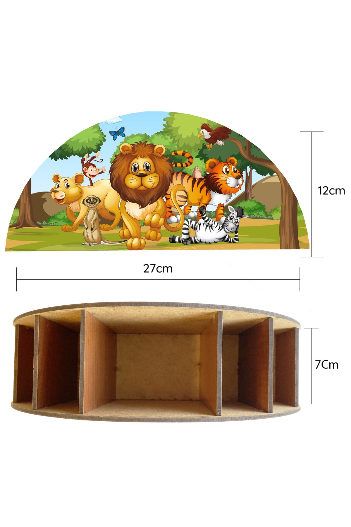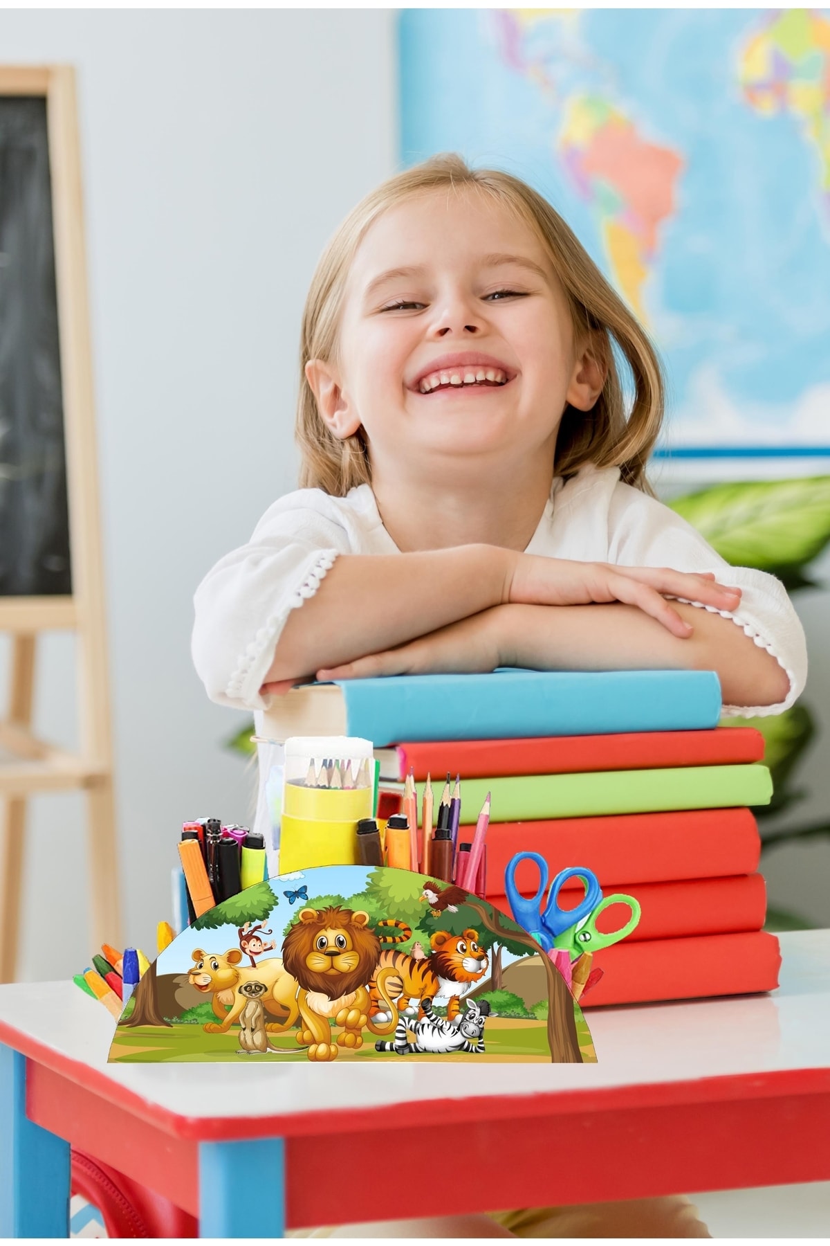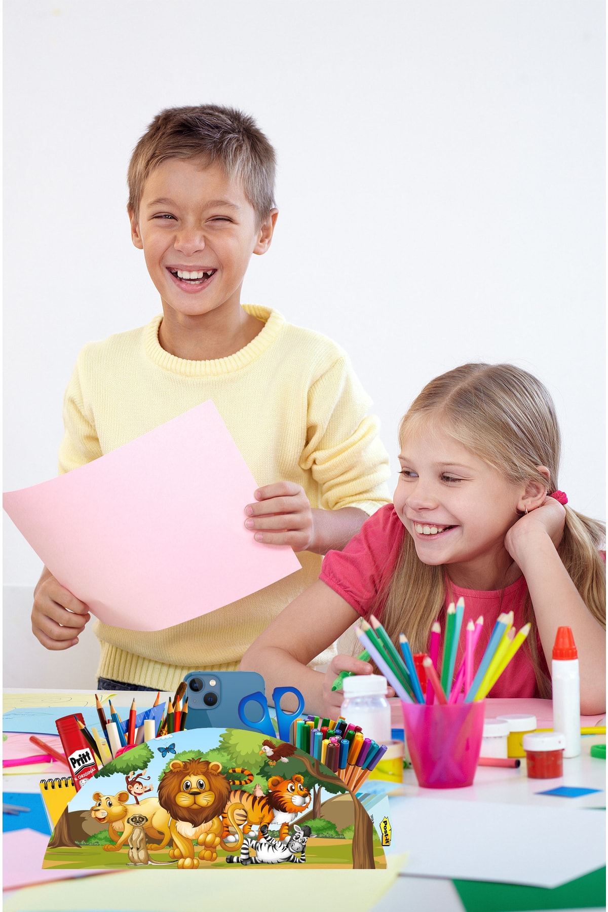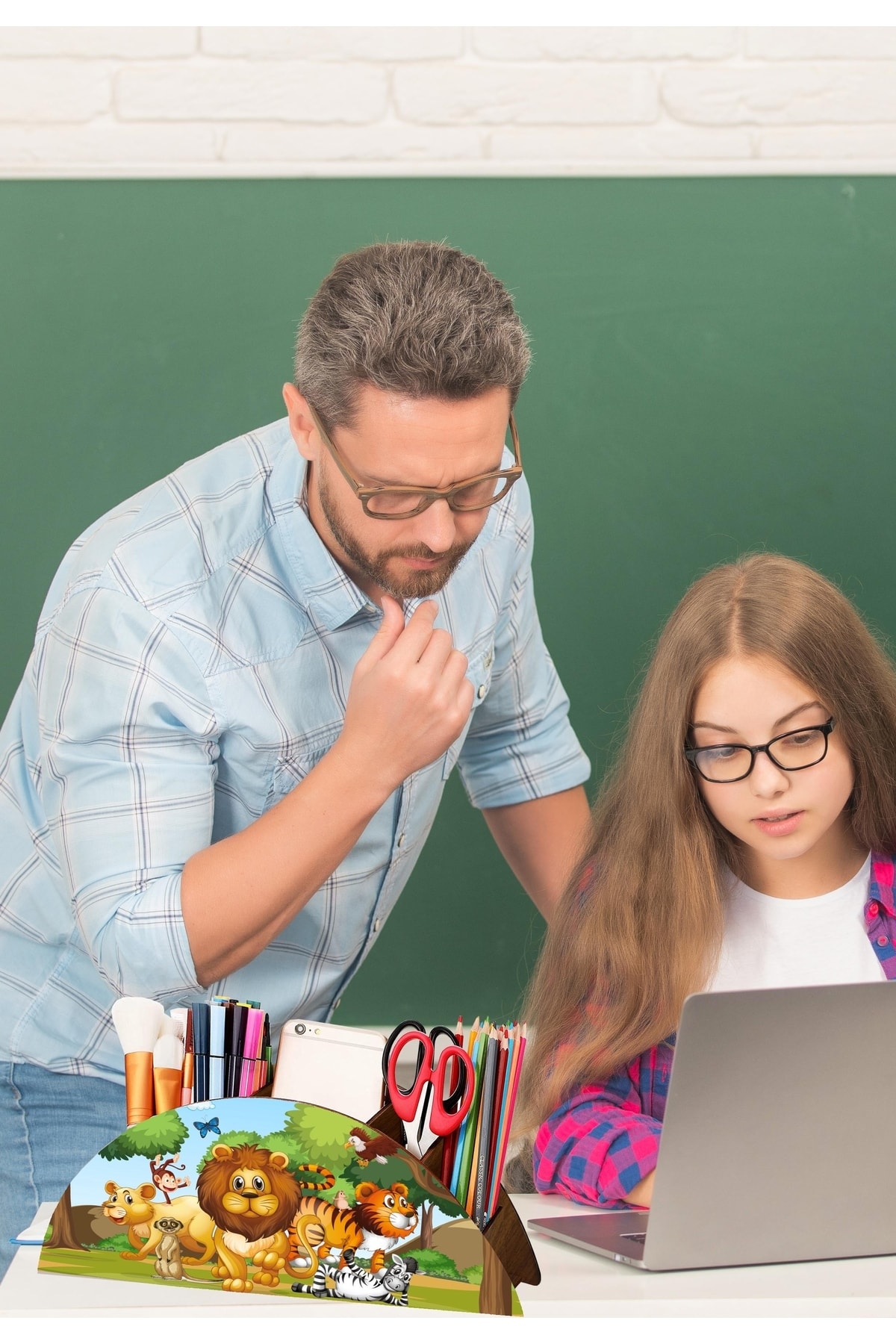 Ahşap Aslan Ve Ekibi Orman Gökkuşağı Kalemlik Çocuklar Için Masaüstü Kalem Kutusu Organizer