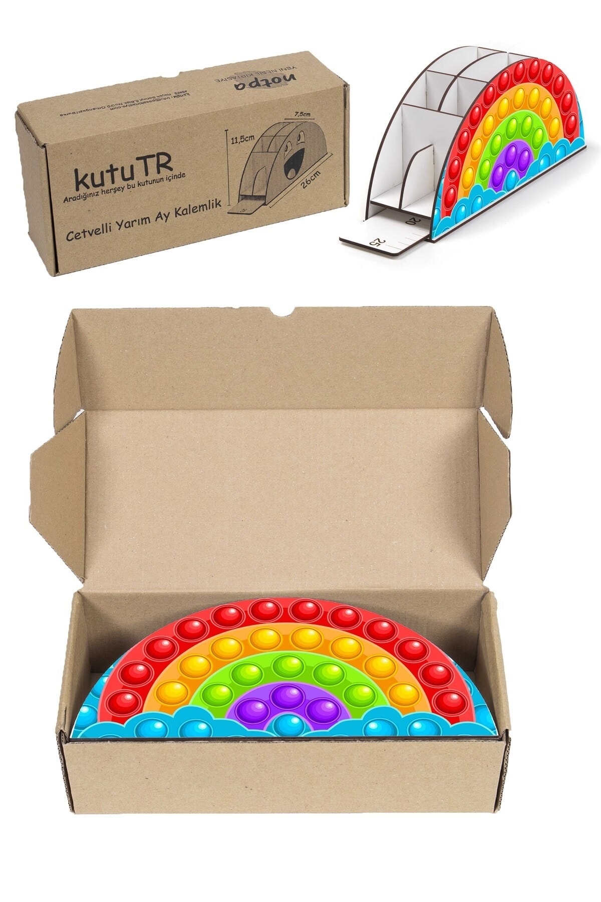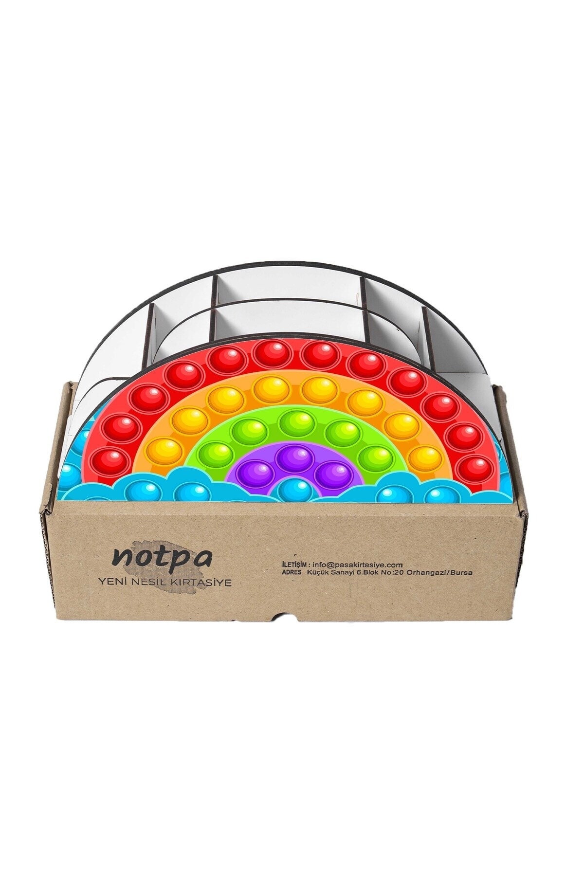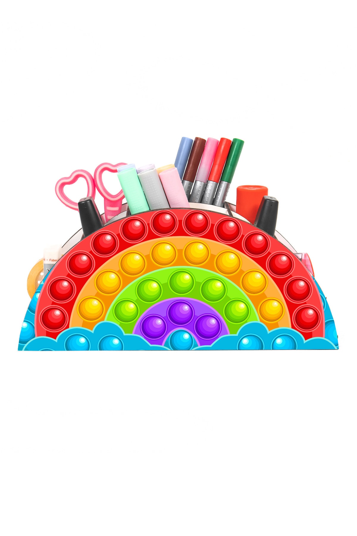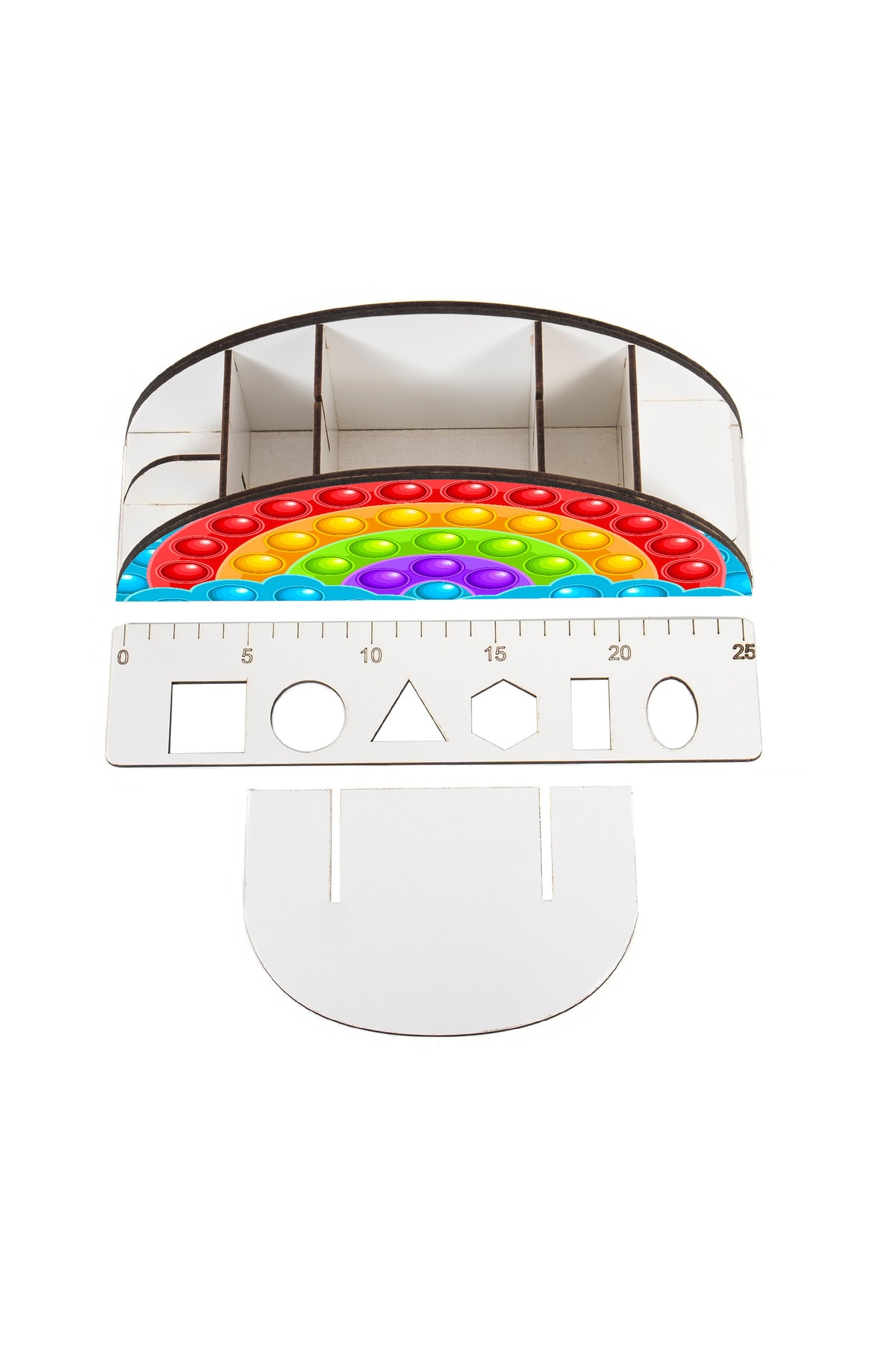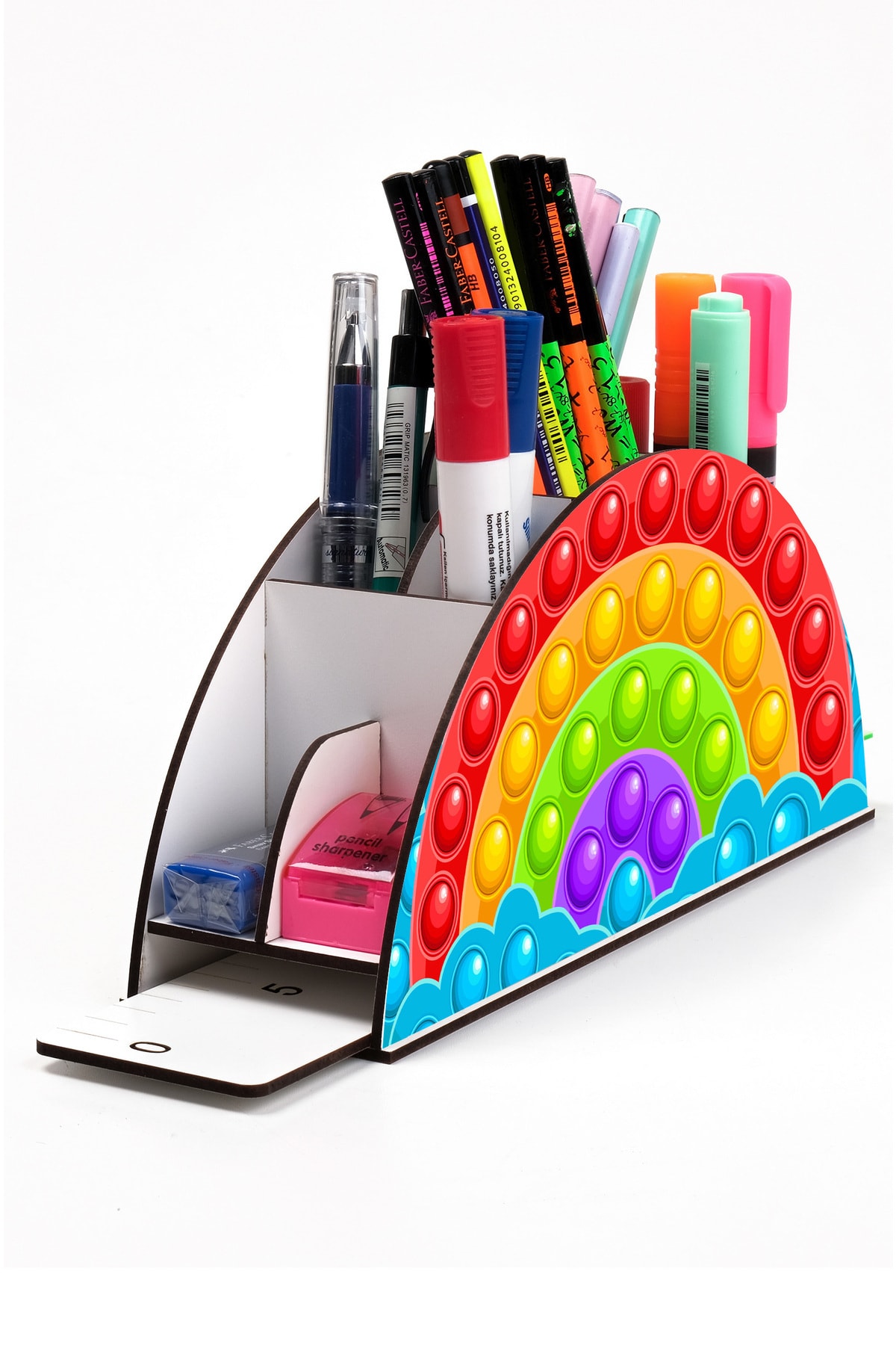 Ahşap Baloncuklu Popit Gökkuşağı Cetvelli Masaüstü Kalemlik Kutu Çocuklar Için Organizer Gk106
