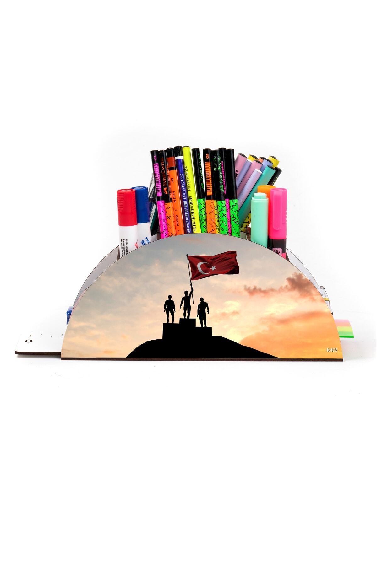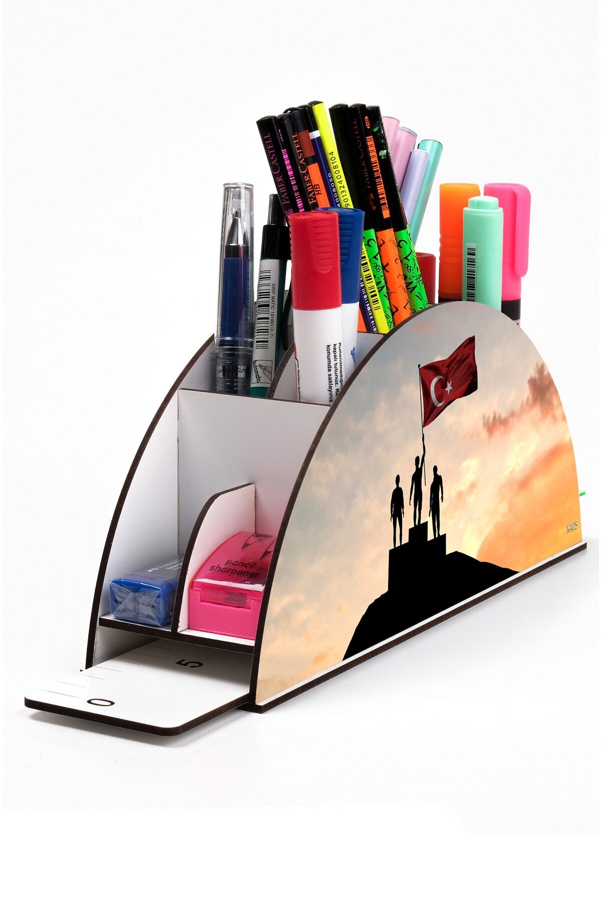 Ahşap Bayrak Gökkuşağı Cetvelli Masaüstü Kalemlik Organizer Montajlı Kutulu