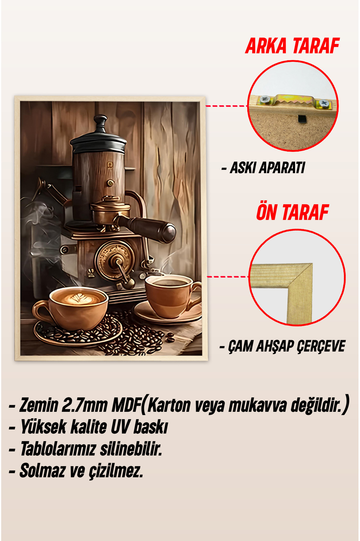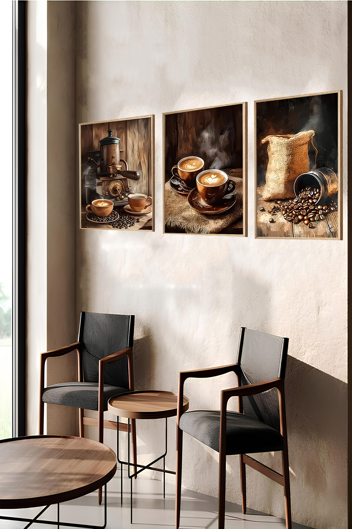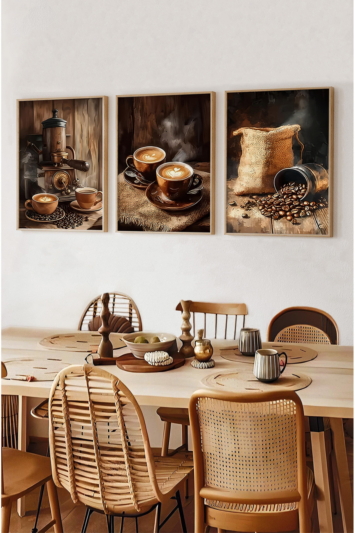 ☕ Ahşap Çerçeveli MDF 3’lü Kahve Temalı Tablo Seti – 23x32 / 32x42 / 42x62 cm CRV1002