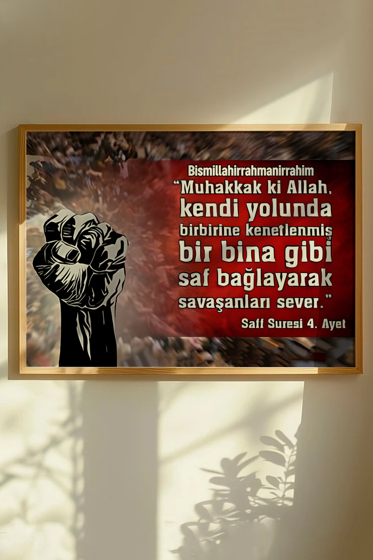 Ahşap Çerçeveli Mdf Kare İslami Tek Tablo AYT 61-4 SAFF -4 Ayet