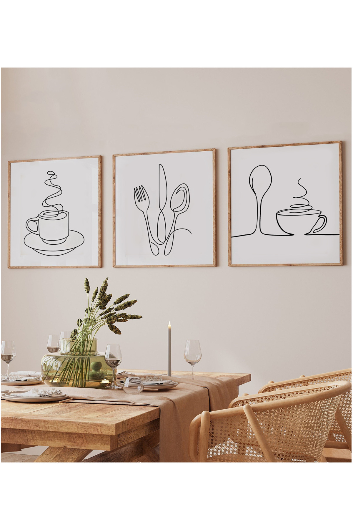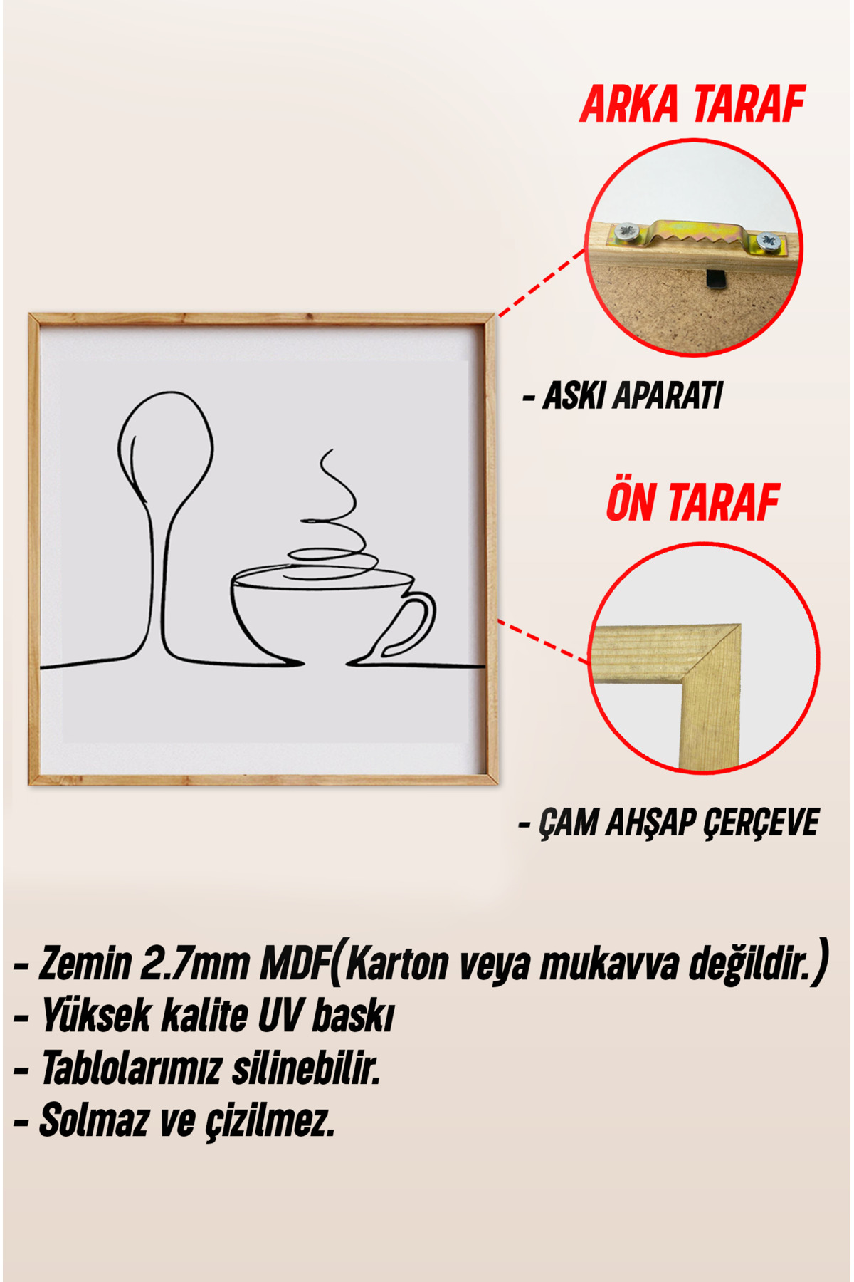 Ahşap Çerçeveli Mdf Kare Tablo Seti Mutfak Için