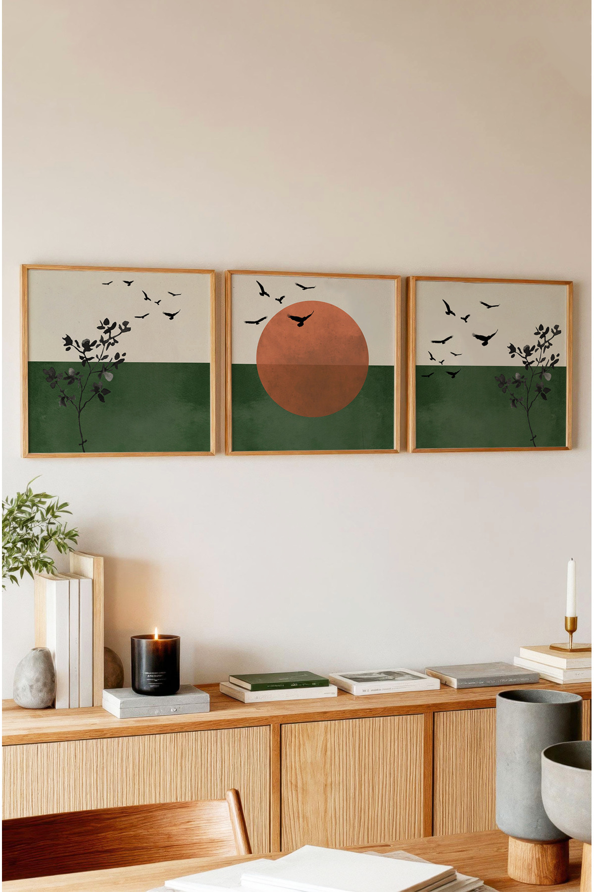 Ahşap Çerçeveli Mdf Kare Tablo Seti Salon Ve Oturma Odası Için KR4007
