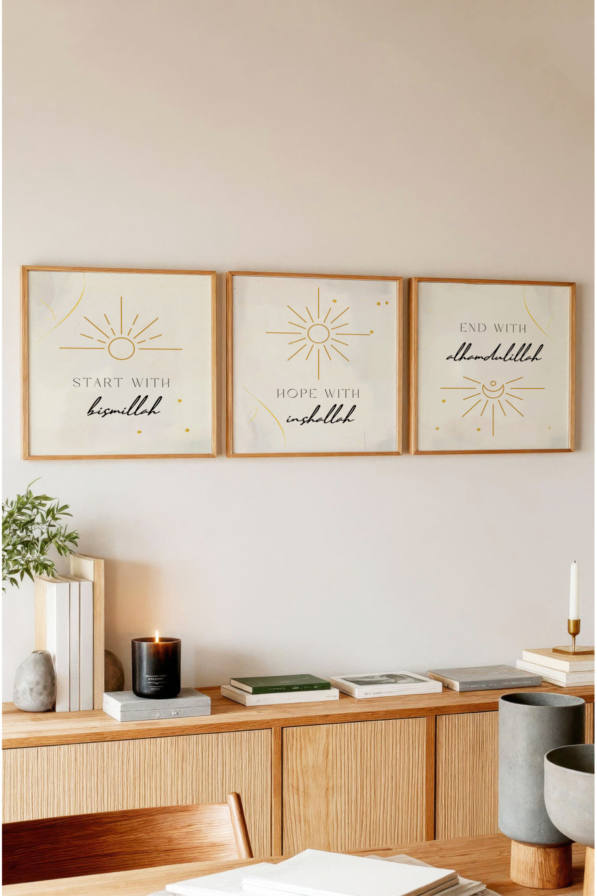 Ahşap Çerçeveli Mdf Kare Tablo Seti Salon Ve Oturma Odası Için KR4015
