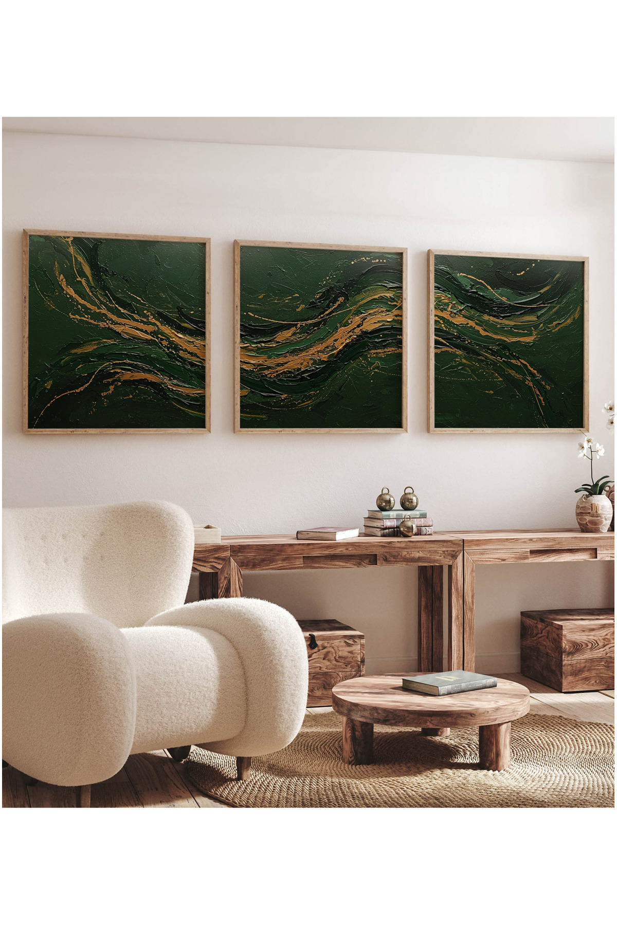 Ahşap Çerçeveli Mdf Kare Tablo Seti Salon Ve Oturma Odası Için KR4024