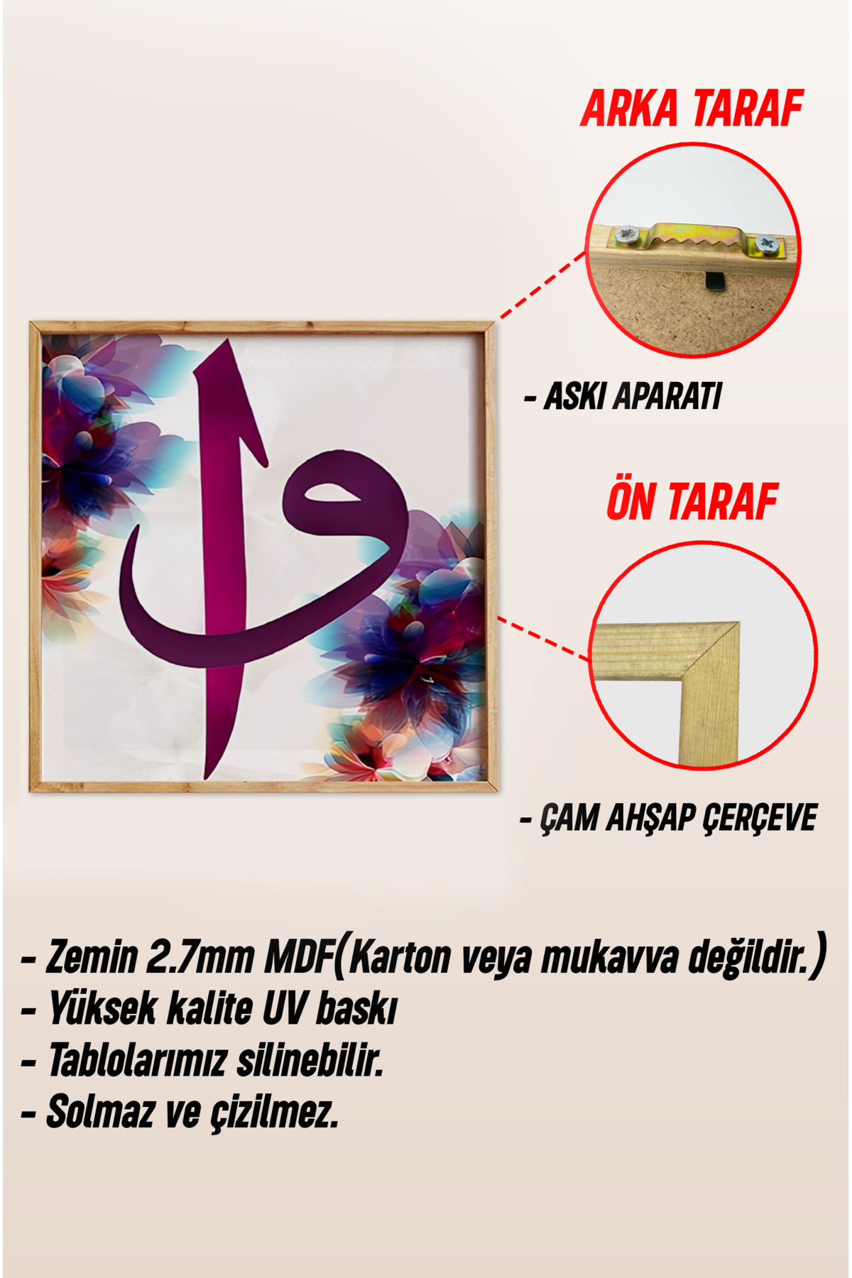 Ahşap Çerçeveli Mdf KARE Tek Tablo (KENDİ TABLO SETİNİZİ OLUŞTURACAĞINIZ LİSTE) İSLAMİ