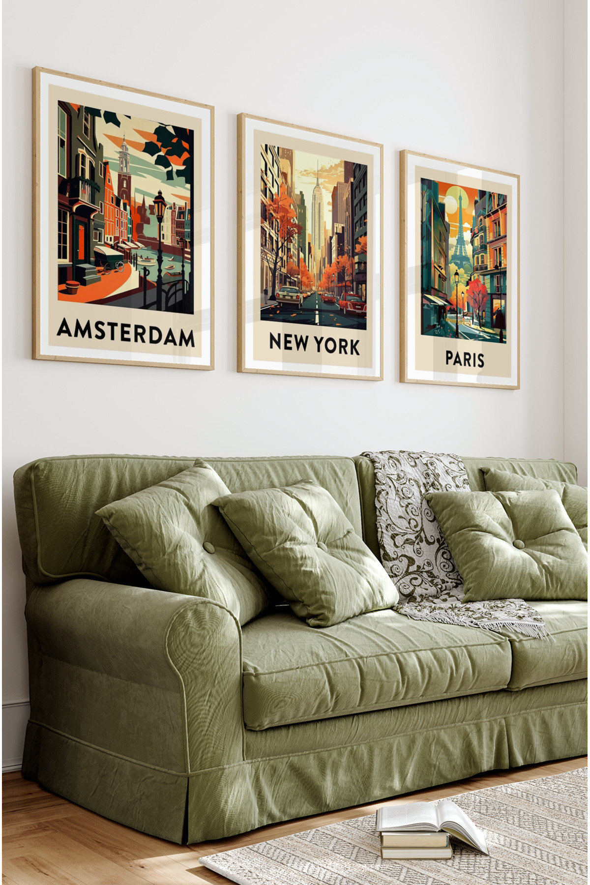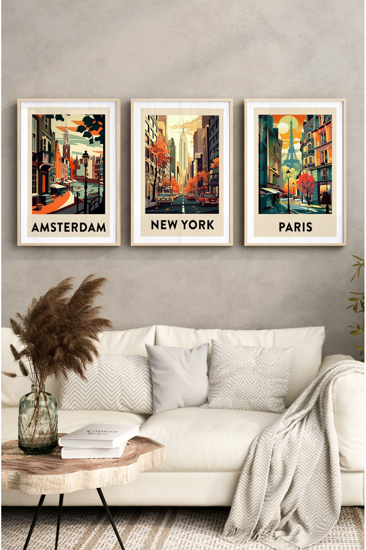 Ahşap Çerçeveli Mdf Tablo Seti Matisse, Bohem, Kusama Salon Ve Oturma Odası İçin ÇT3077