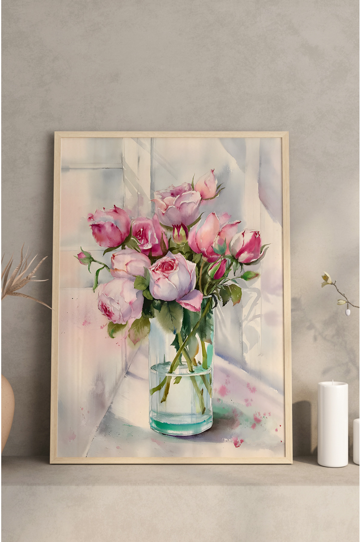 Ahşap Çerçeveli Mdf Tablo Seti Salon Ve Oturma Odası İçin Çiçekler ÇT3070