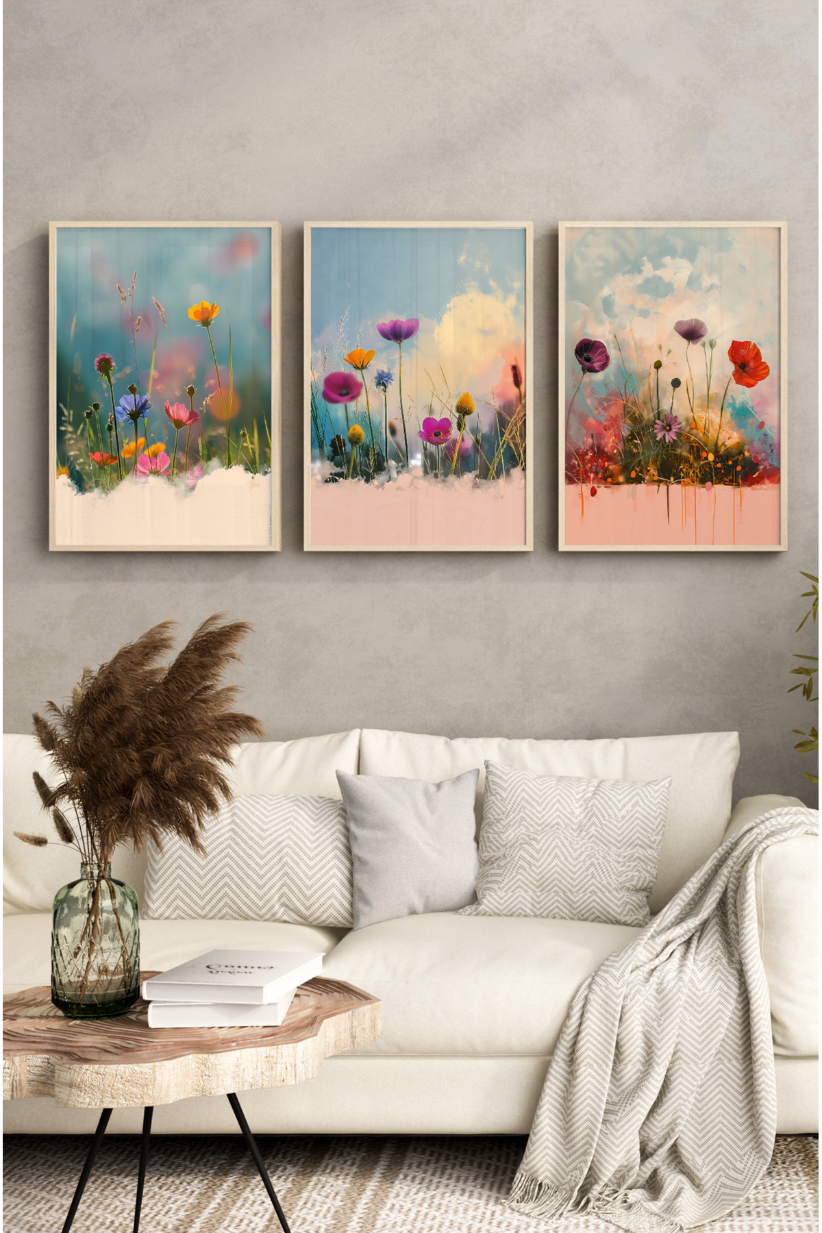 Ahşap Çerçeveli Mdf Tablo Seti Salon Ve Oturma Odası Için Çt3094