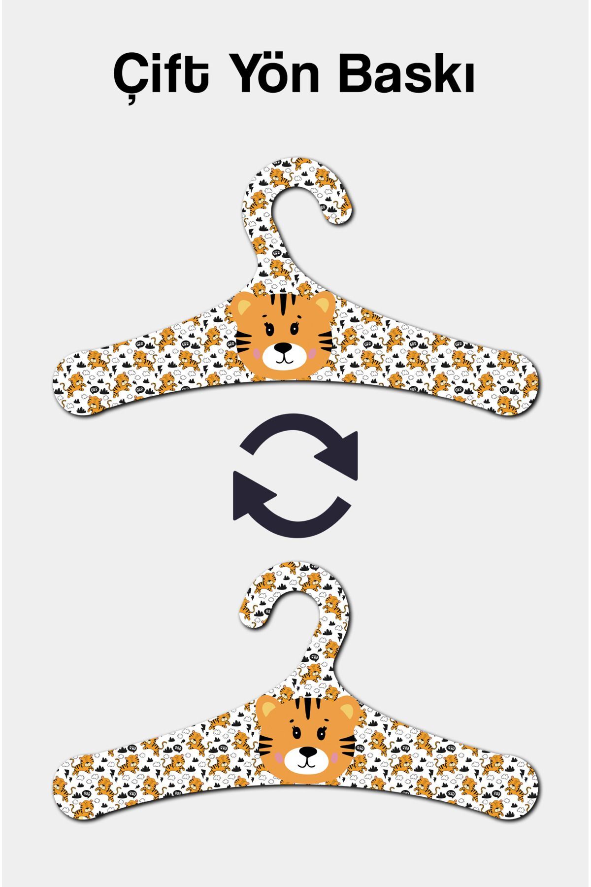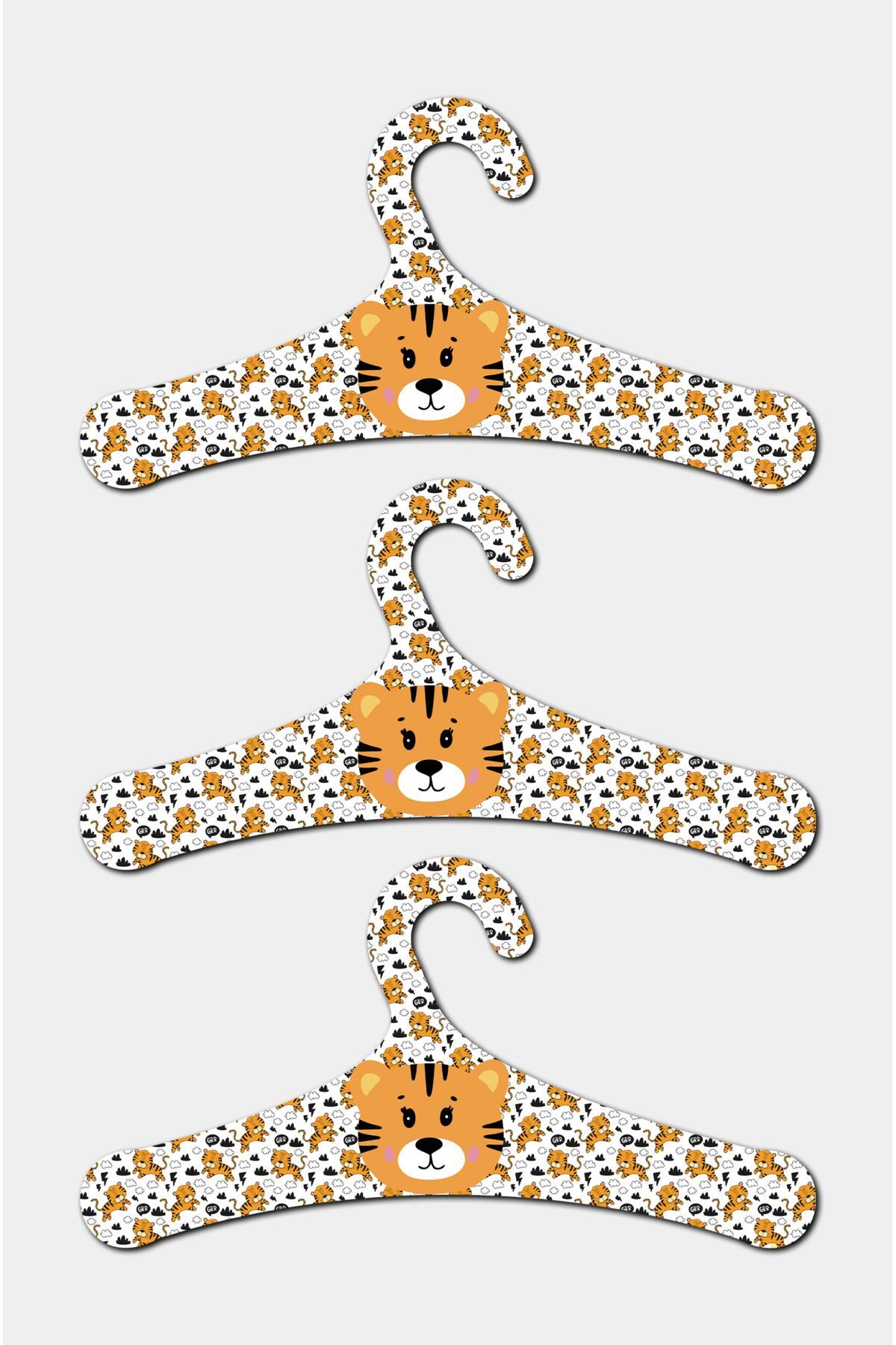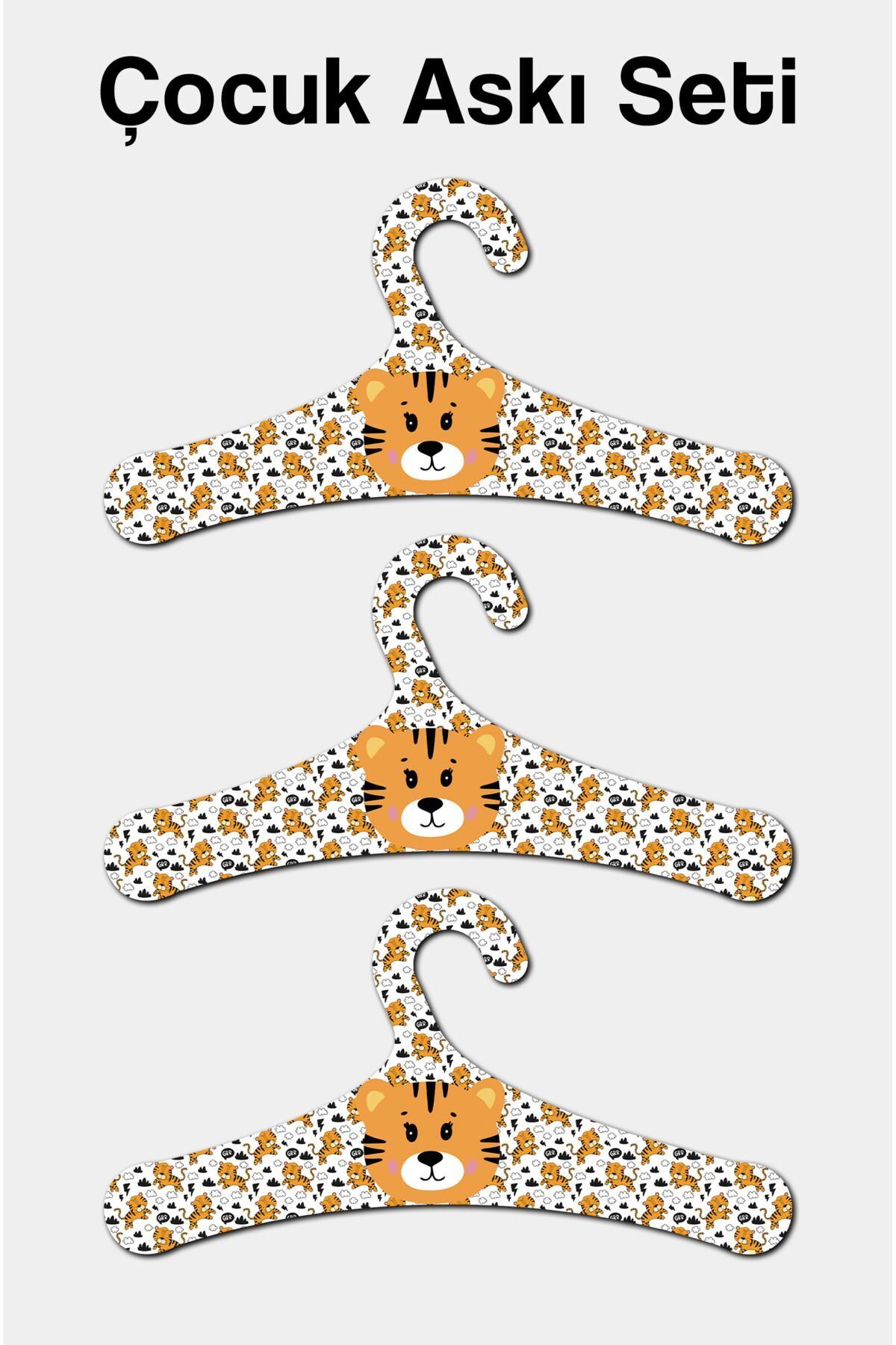 Ahşap Çocuk Askısı Kaplan Desenli 18 Adet Askı