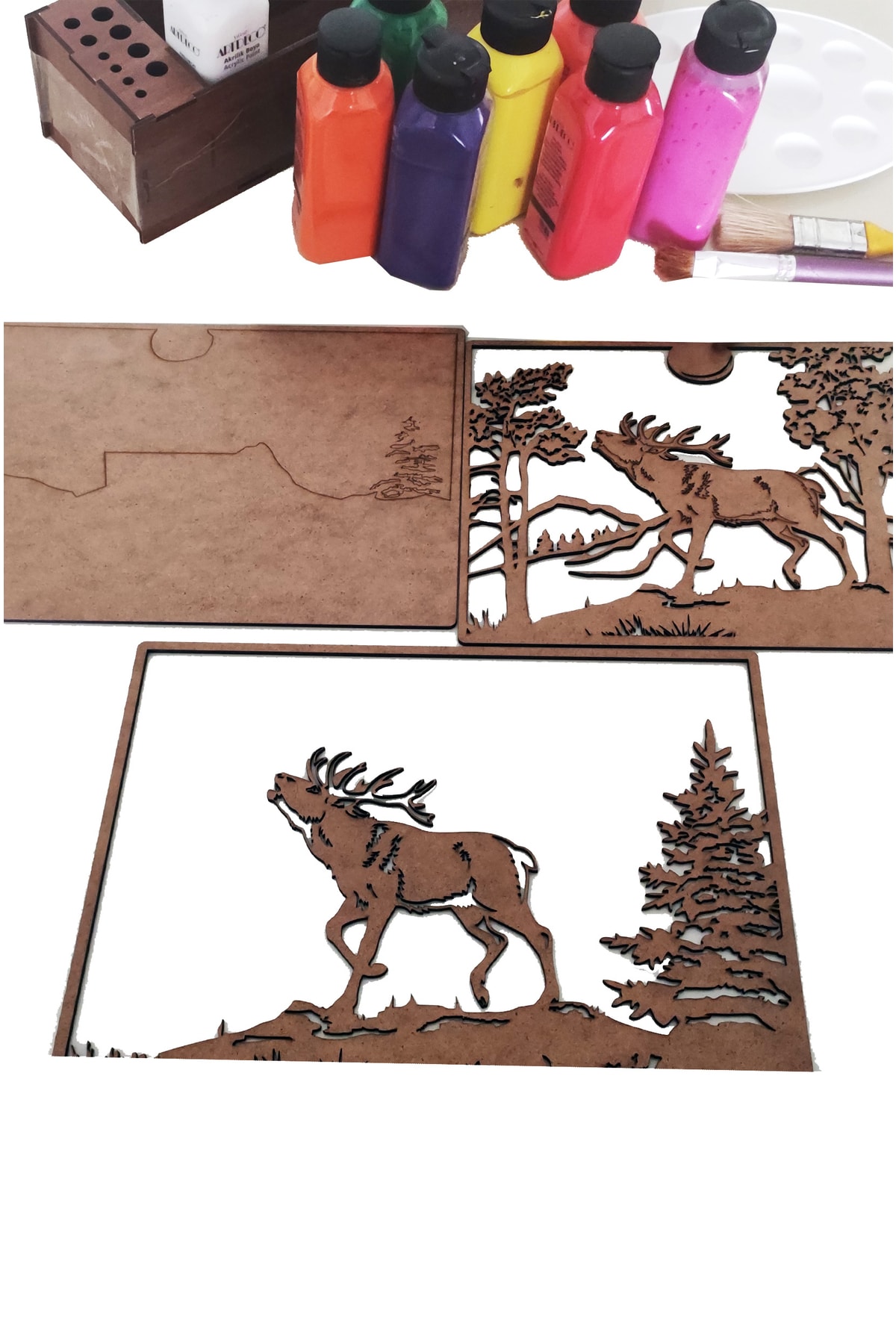 Ahşap Çok Katmanlı Boyanabilir Tablo - Pano \ Geyik Figürlü