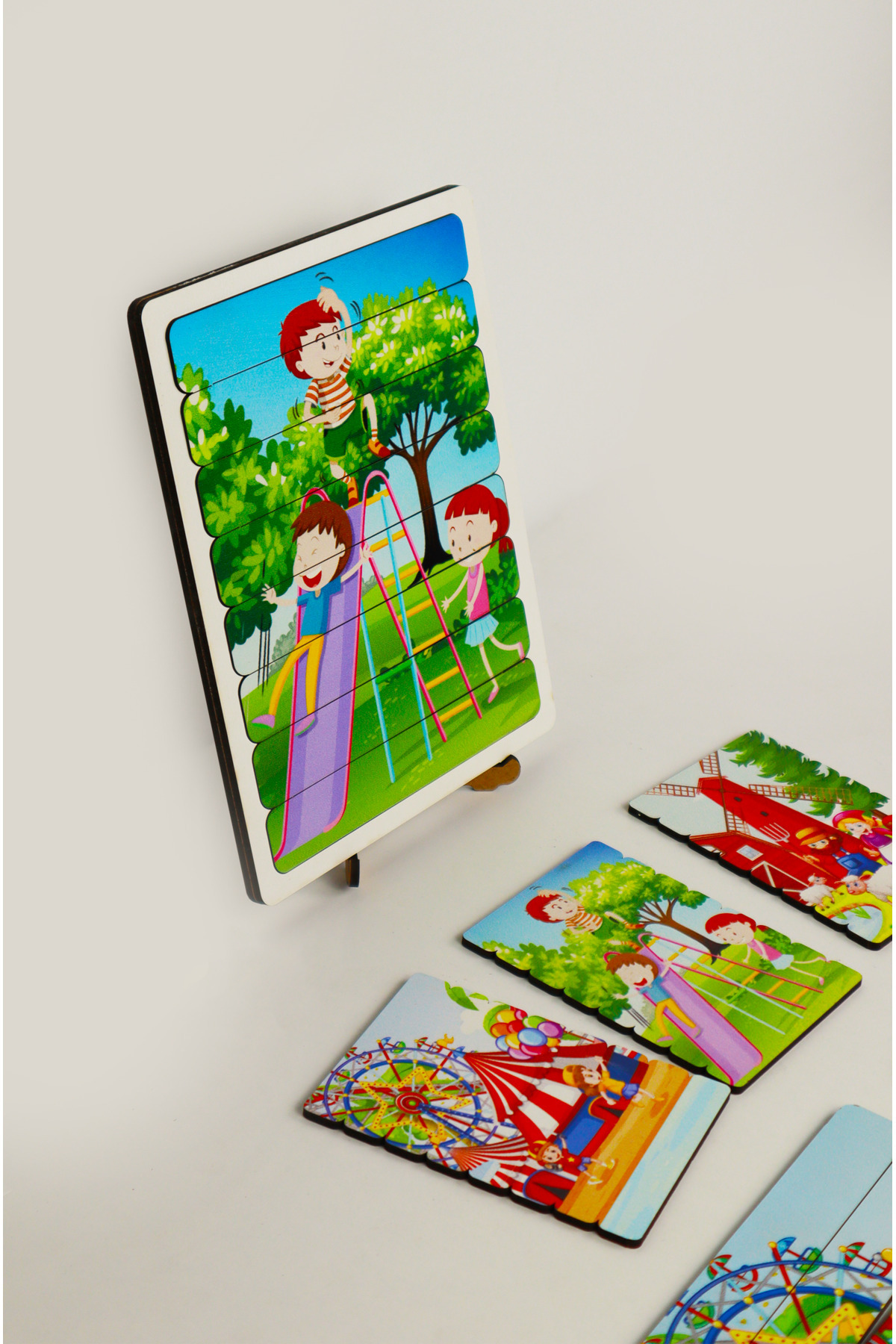 Ahşap Çubuk Puzzle, 3lü Set Puzzle, Lunapark Puzzle, Montesorri Puzzle ÇB301