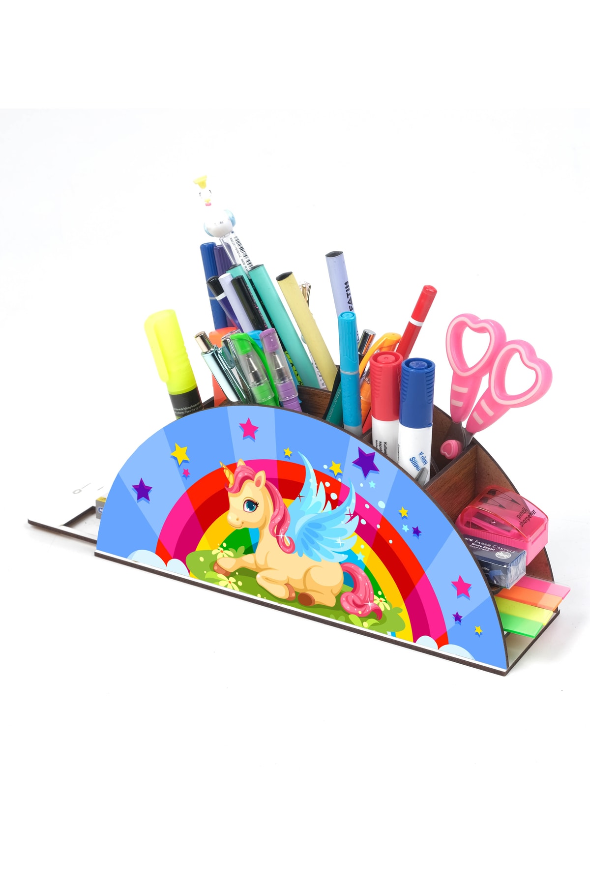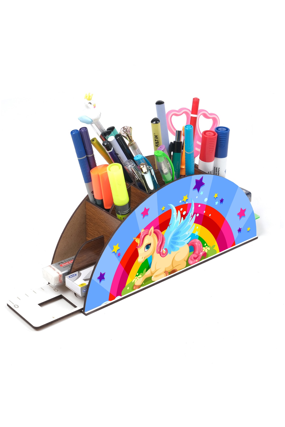 Ahşap Kanatlı At Unicorn Gökkuşağı Cetvelli Masaüstü Kalemlik Kutu Çocuklar Için Organizer Gk25