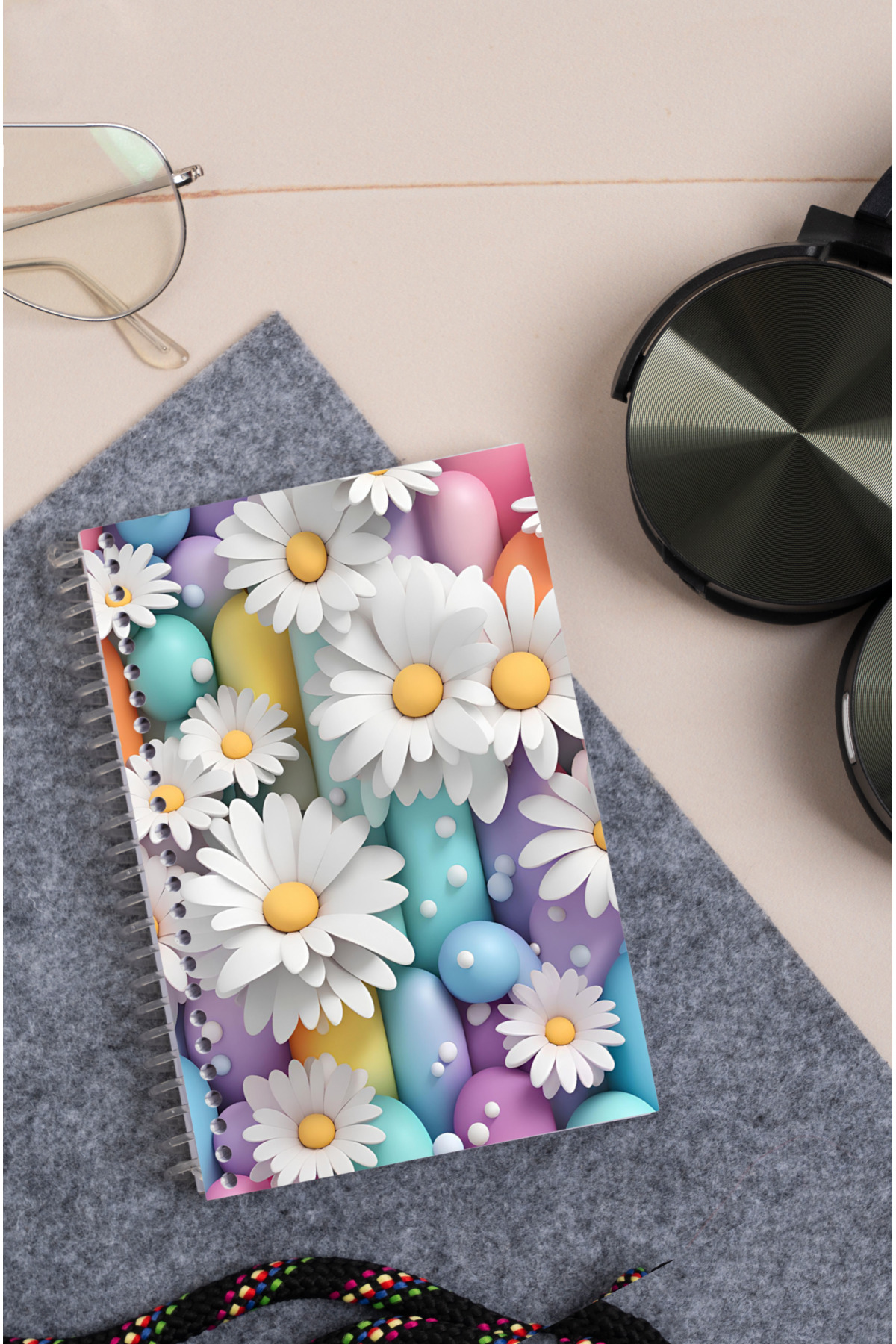 Çiçek Desen Organizer ve Ahşap Mdf Kapaklı 5'li Defter Seti (3 Bloknot 2 Modelist Defter)