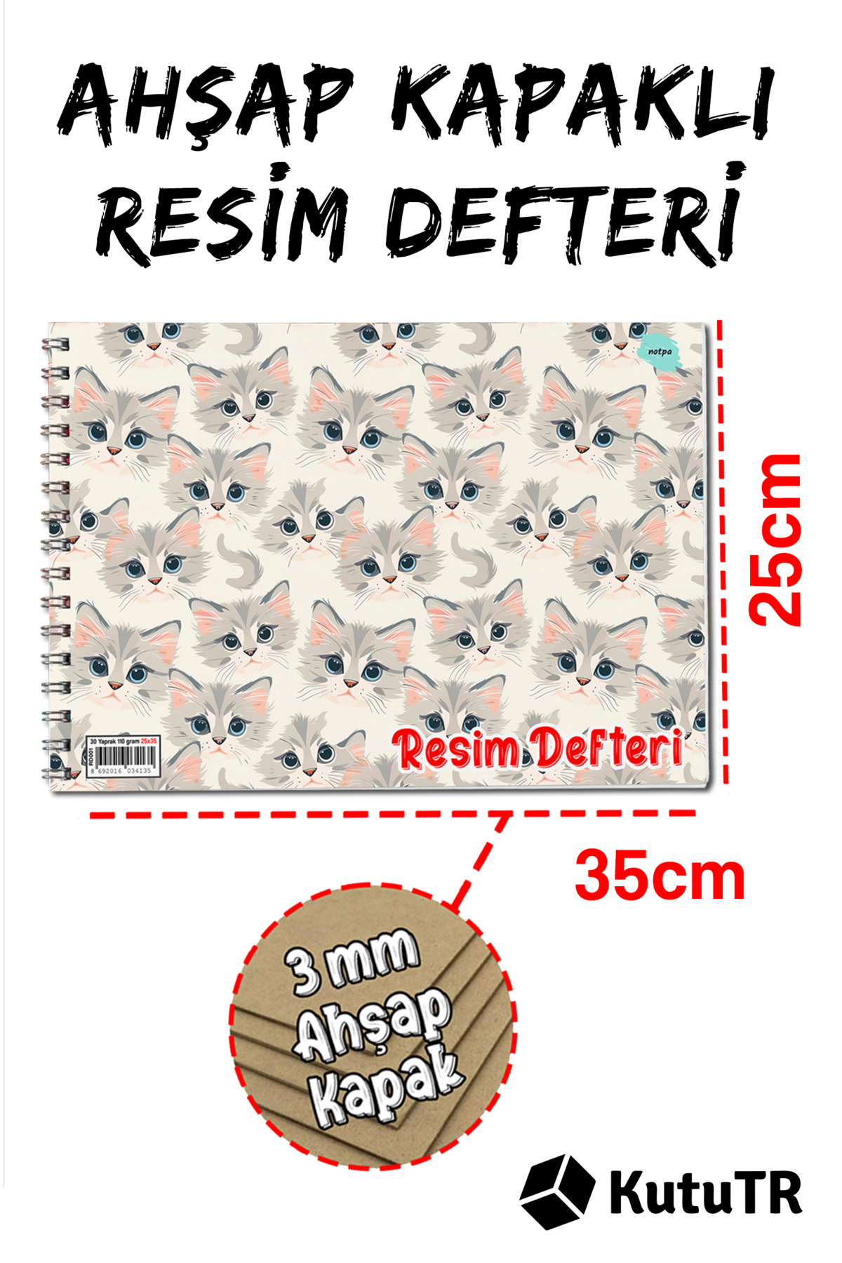 Ahşap Kapaklı Lüx 25x35 Resim Defteri 110 gr 30 yaprak RD001