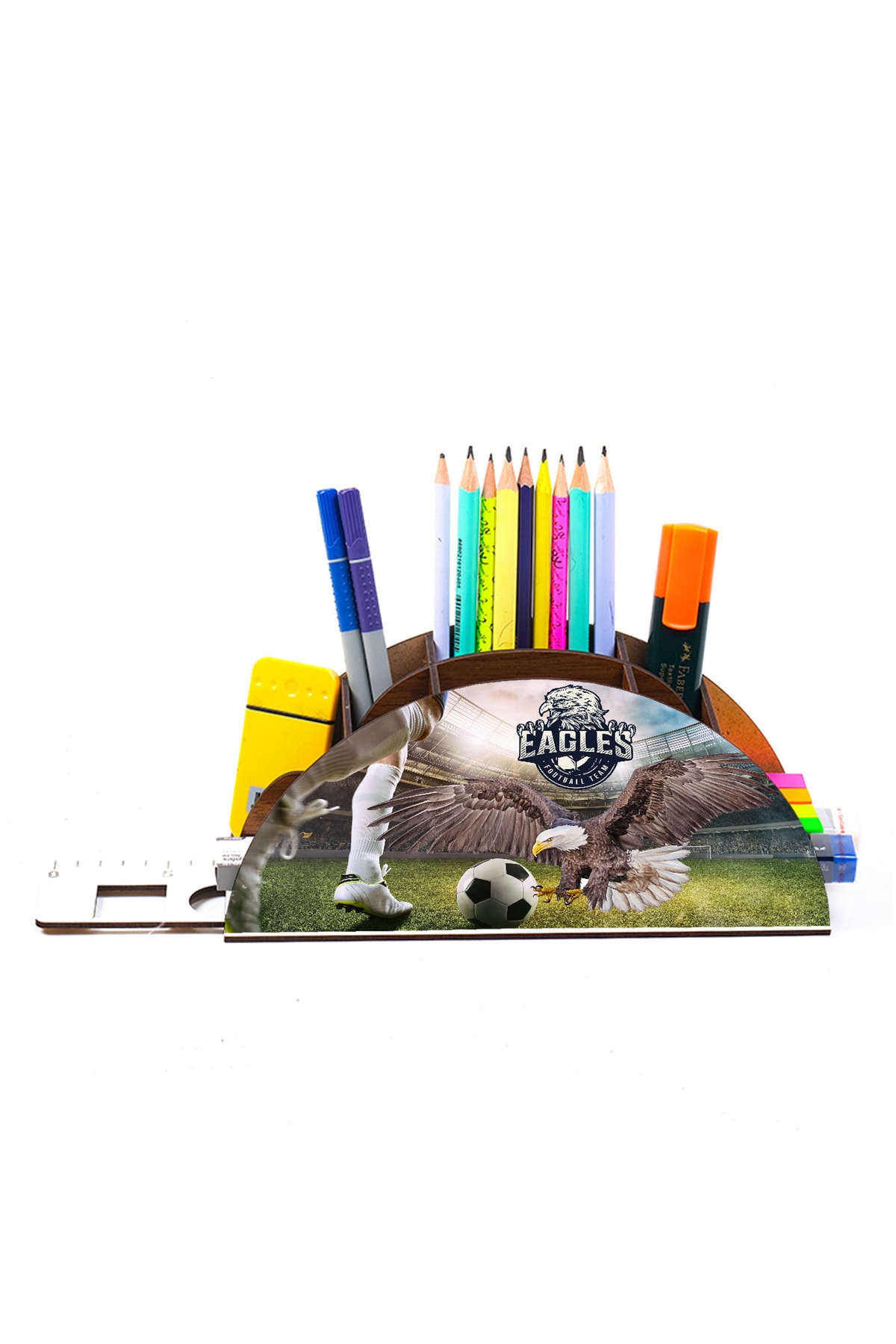 Ahşap Kara Kartal Gökkuşağı Cetvelli Masaüstü Kalemlik Kutu Çocuklar Için Organizer Gk44