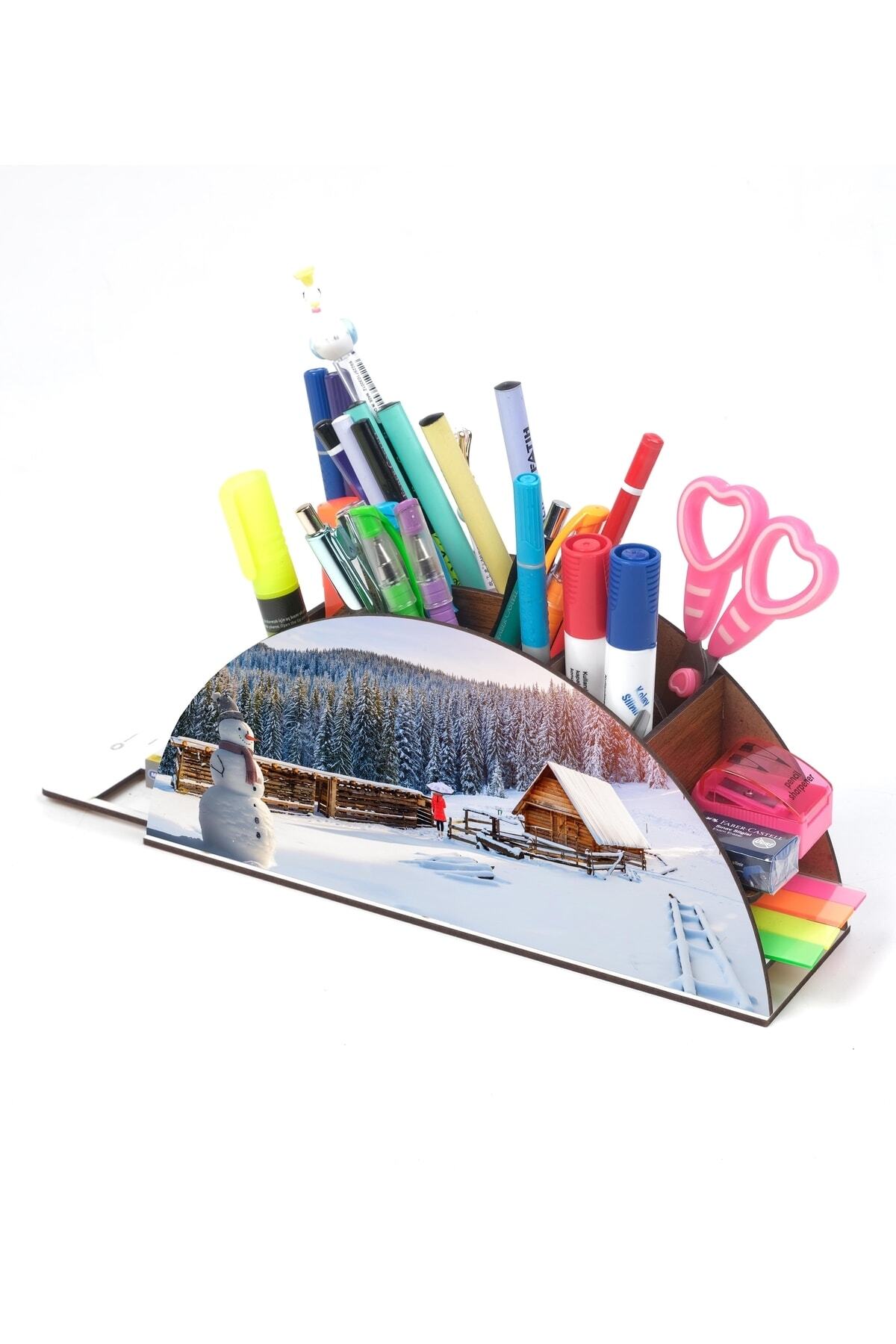 Ahşap Kardan Adam Gökkuşağı Cetvelli Masaüstü Kalemlik Kutu Organizer Gk135