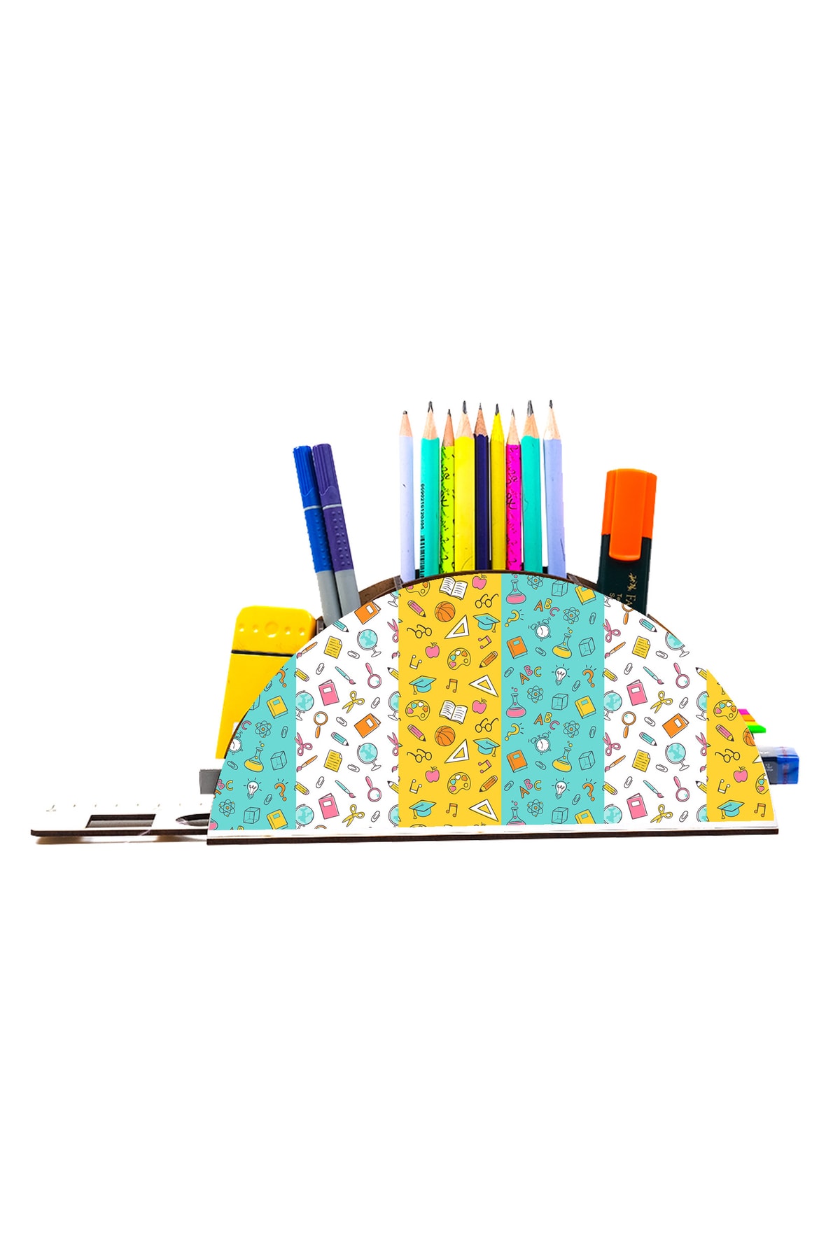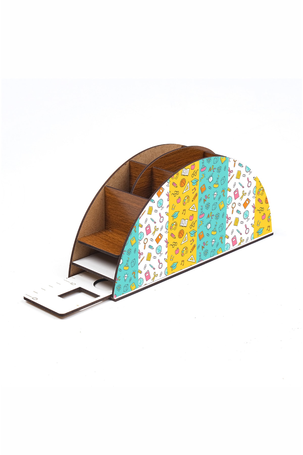 Ahşap Kırtasiye Ikon Gökkuşağı Cetvelli Masaüstü Kalemlik Kutu Çocuklar Için Organizer Gk114