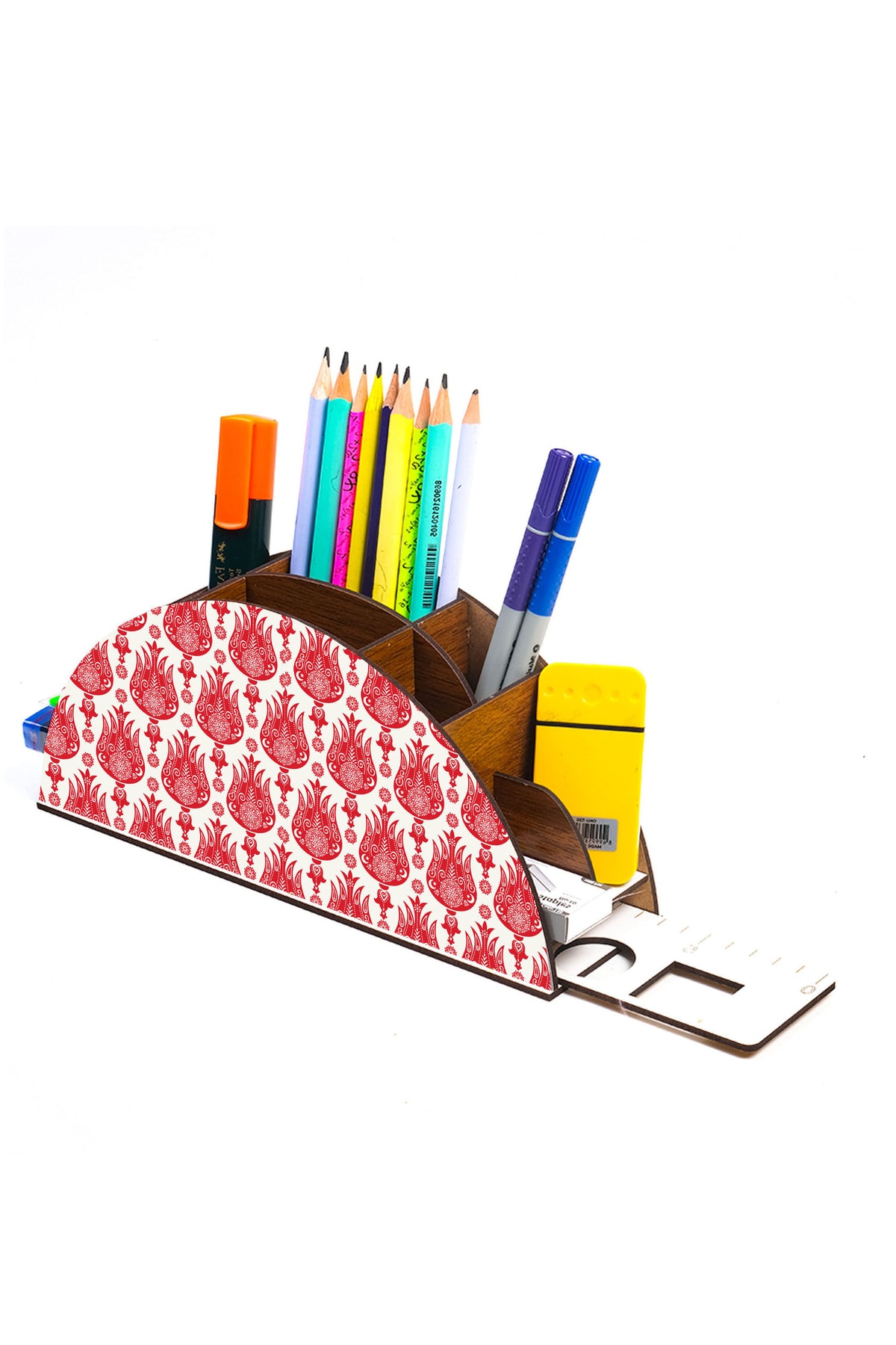 Ahşap Lale Desenli Gökkuşağı Cetvelli Masaüstü Kalemlik Kutu Çocuklar Için Organizer Gk38