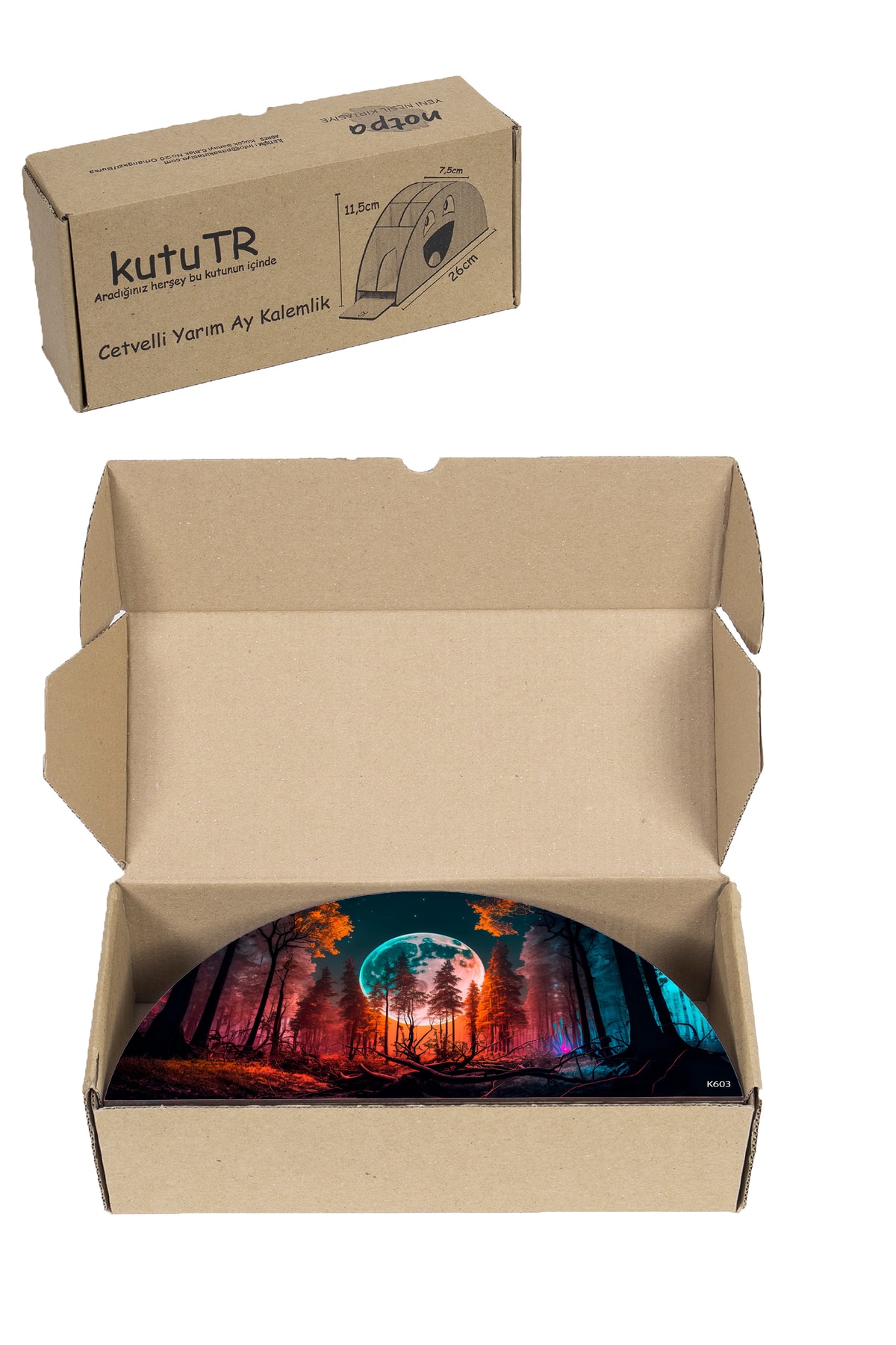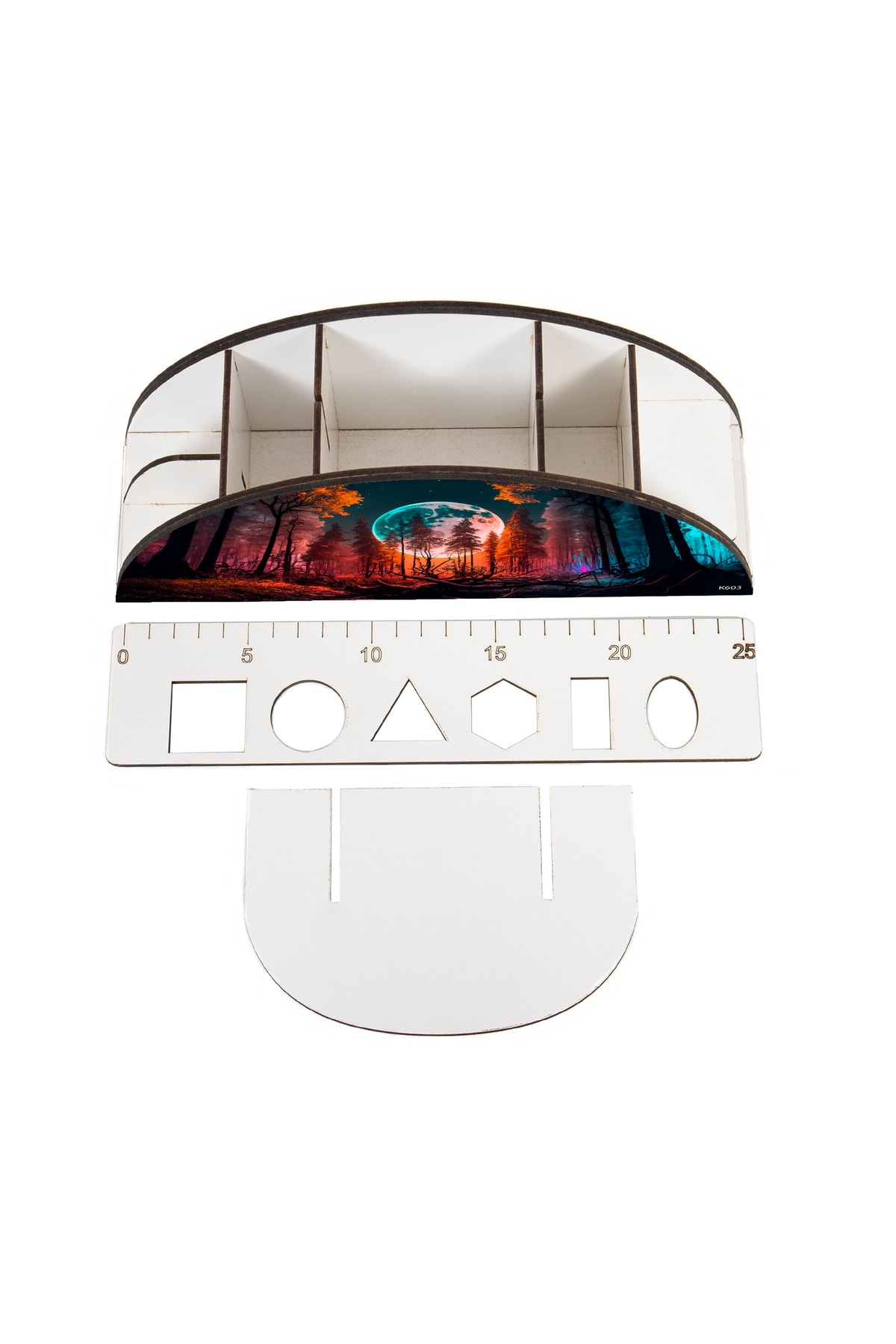 Ahşap Manzara Gökkuşağı Cetvelli Masaüstü Kalemlik Organizer Montajlı Kutulu