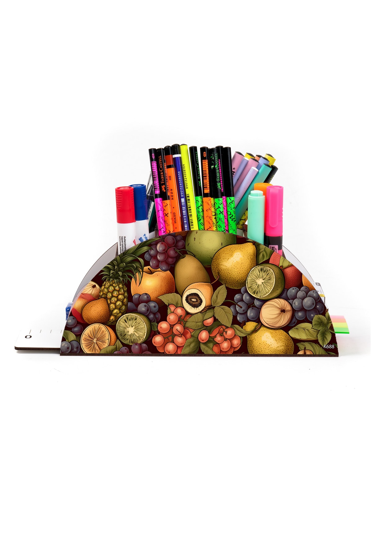 Ahşap Meyve Serisi Gökkuşağı Cetvelli Masaüstü Kalemlik Organizer Montajlı Kutulu