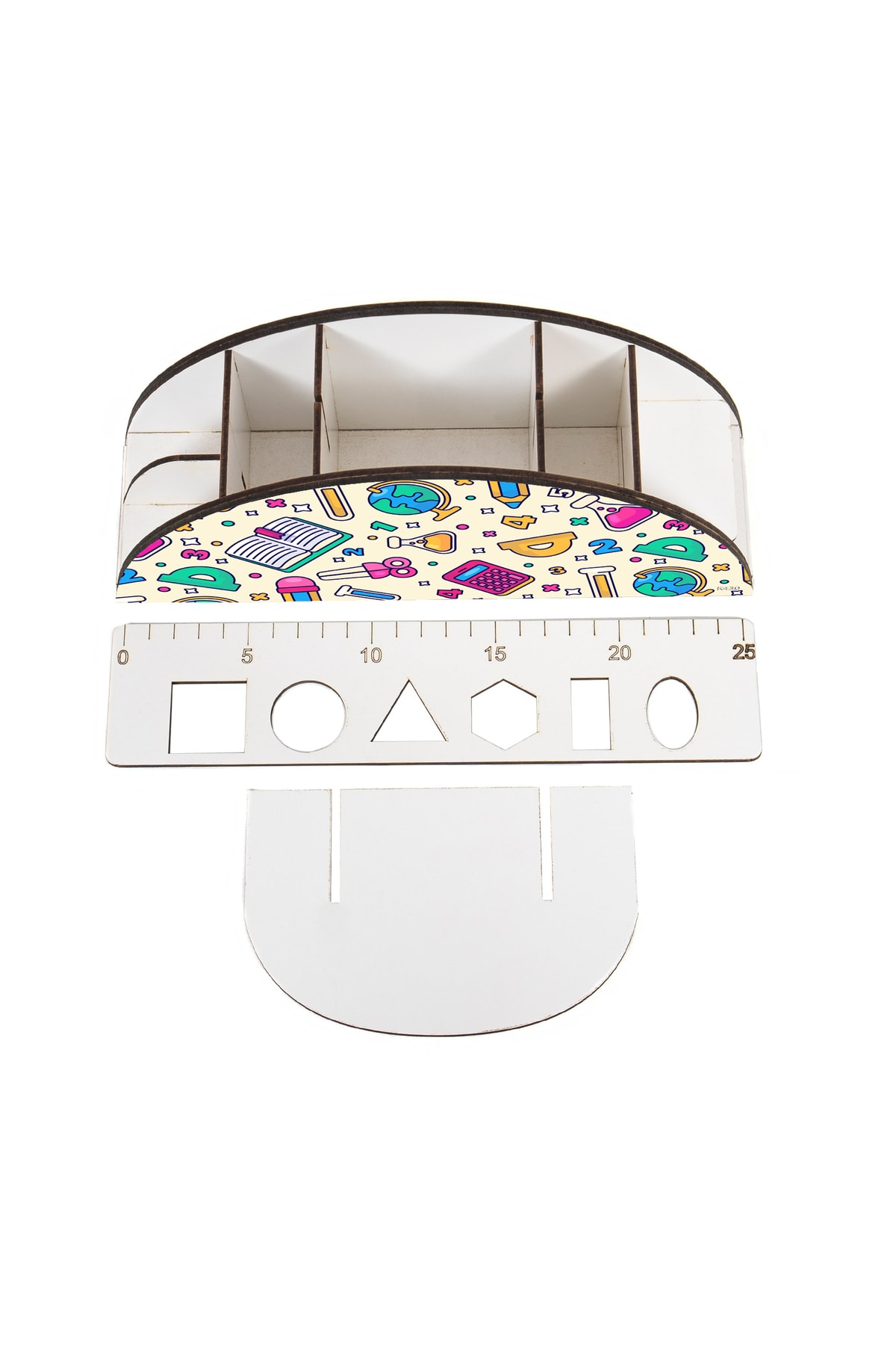 Ahşap Öğrenciler Gökkuşağı Cetvelli Masaüstü Kalemlik Organizer Montajlı Kutulu