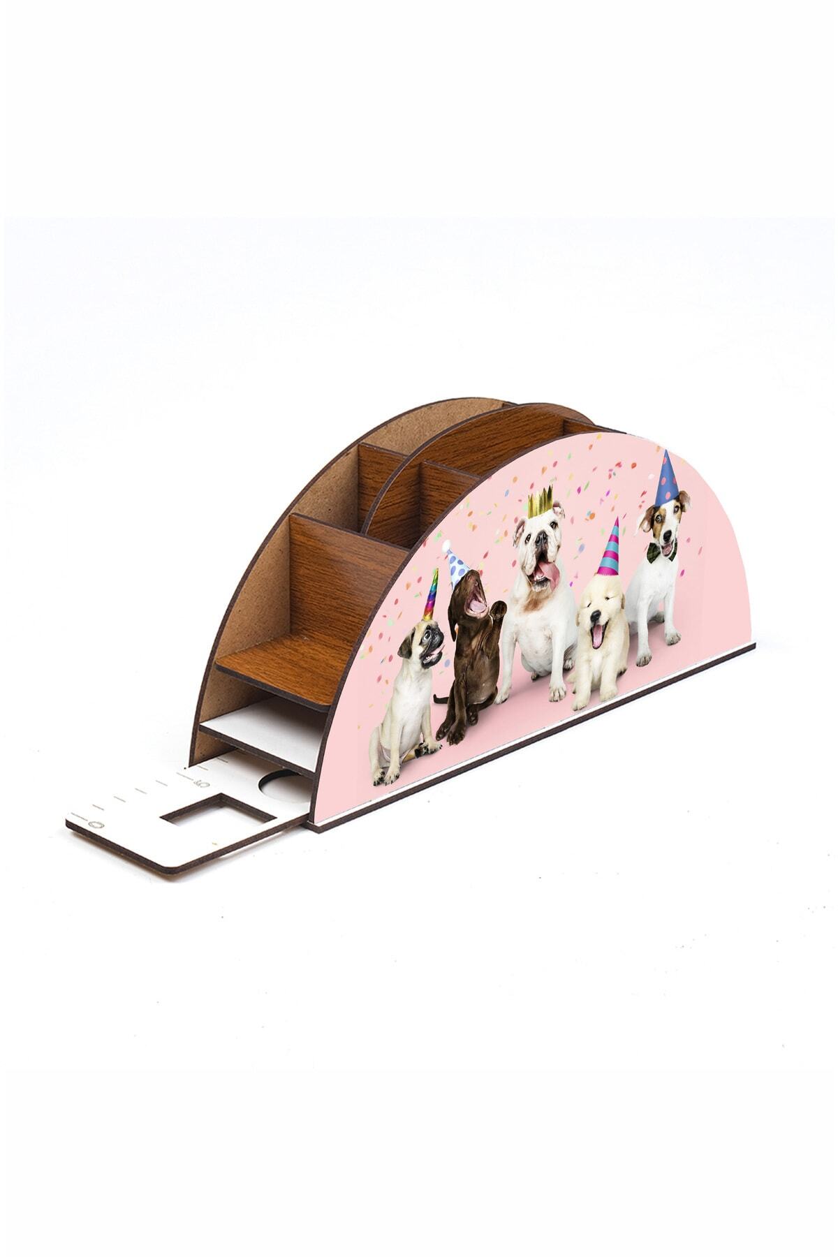 Ahşap Partici Köpekler Gökkuşağı Cetvelli Masaüstü Kalemlik Kutu Çocuklar Için Organizer Gk130