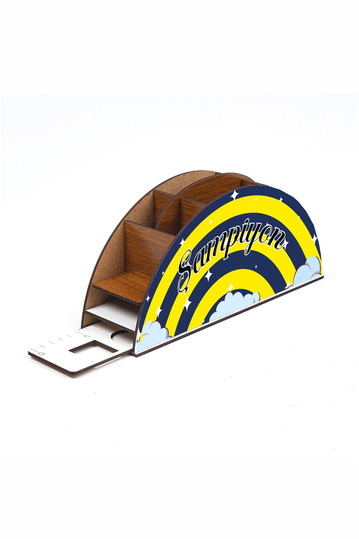 Ahşap Sarı Lacivert Gökkuşağı Cetvelli Masaüstü Kalemlik Kutu Çocuklar Için Organizer Gk112