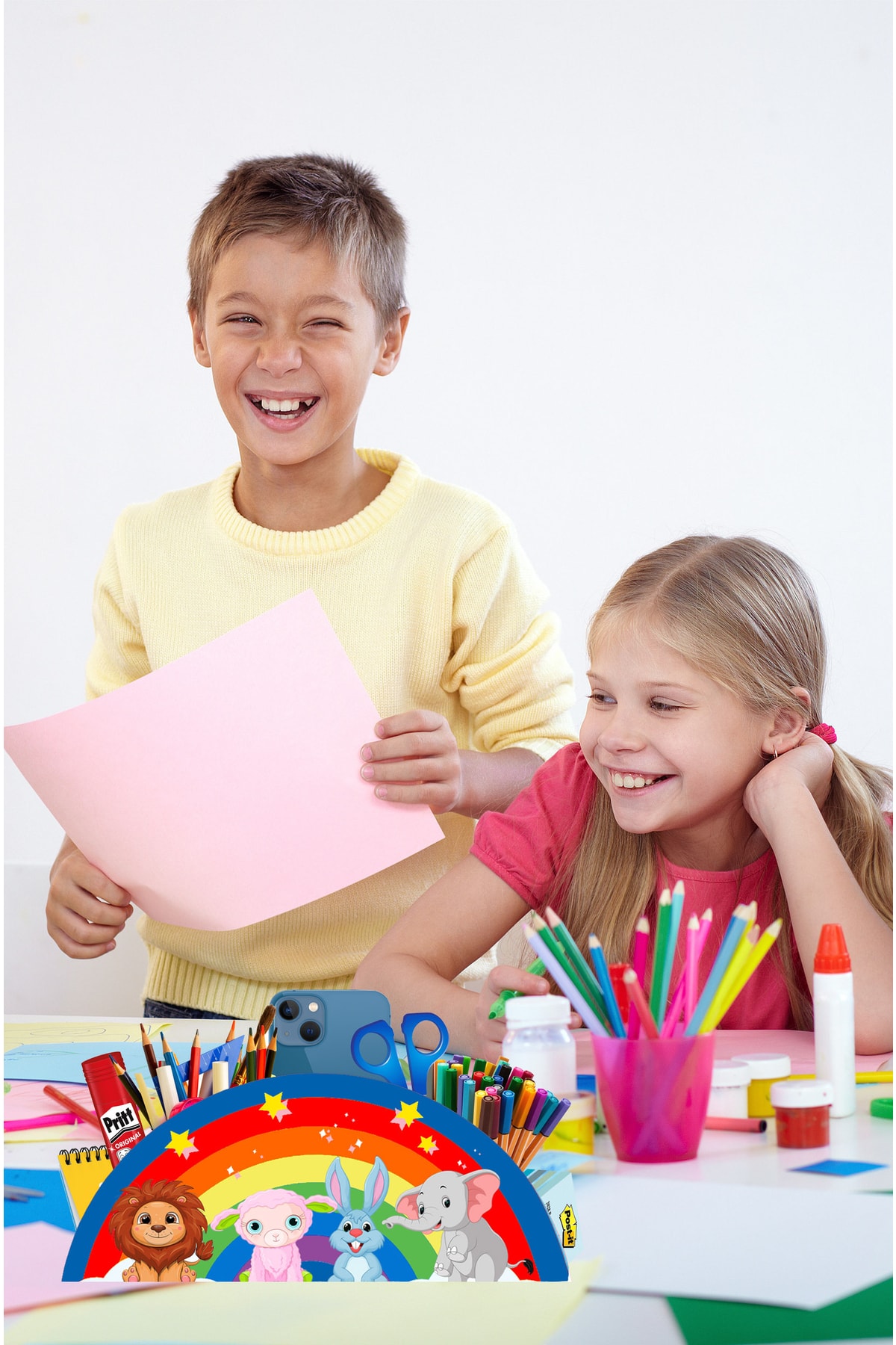 Ahşap Sevimli Hayvanlar Gökkuşağı Kalemlik Çocuklar Için Masaüstü Kalemlik Kalem Kutusu Organizer