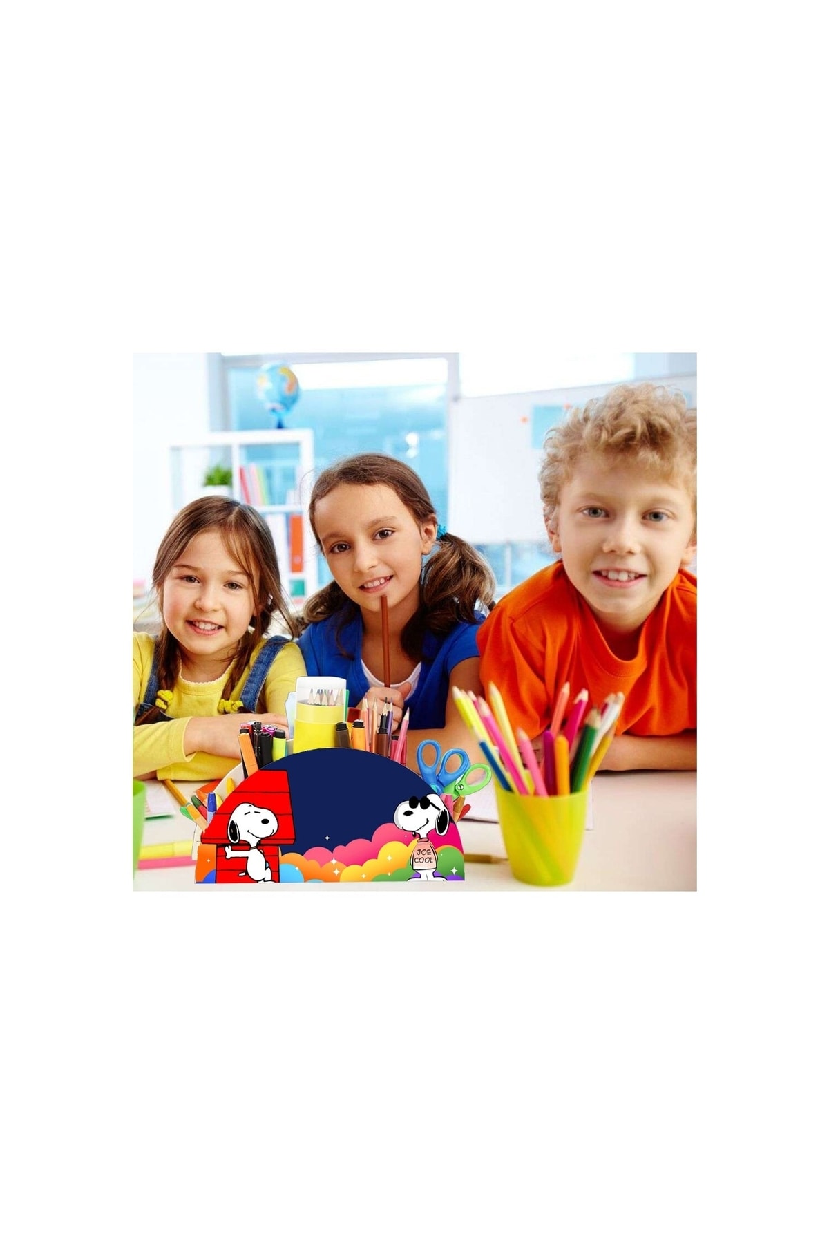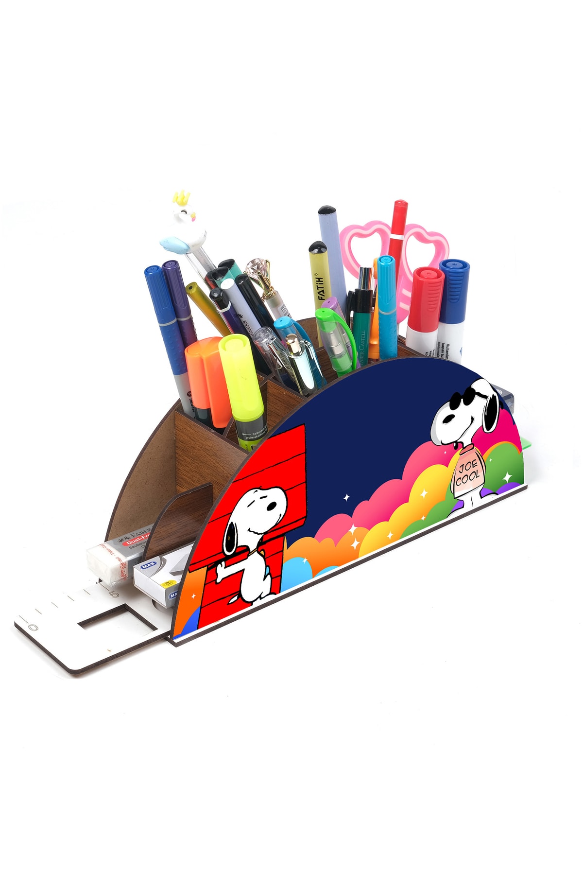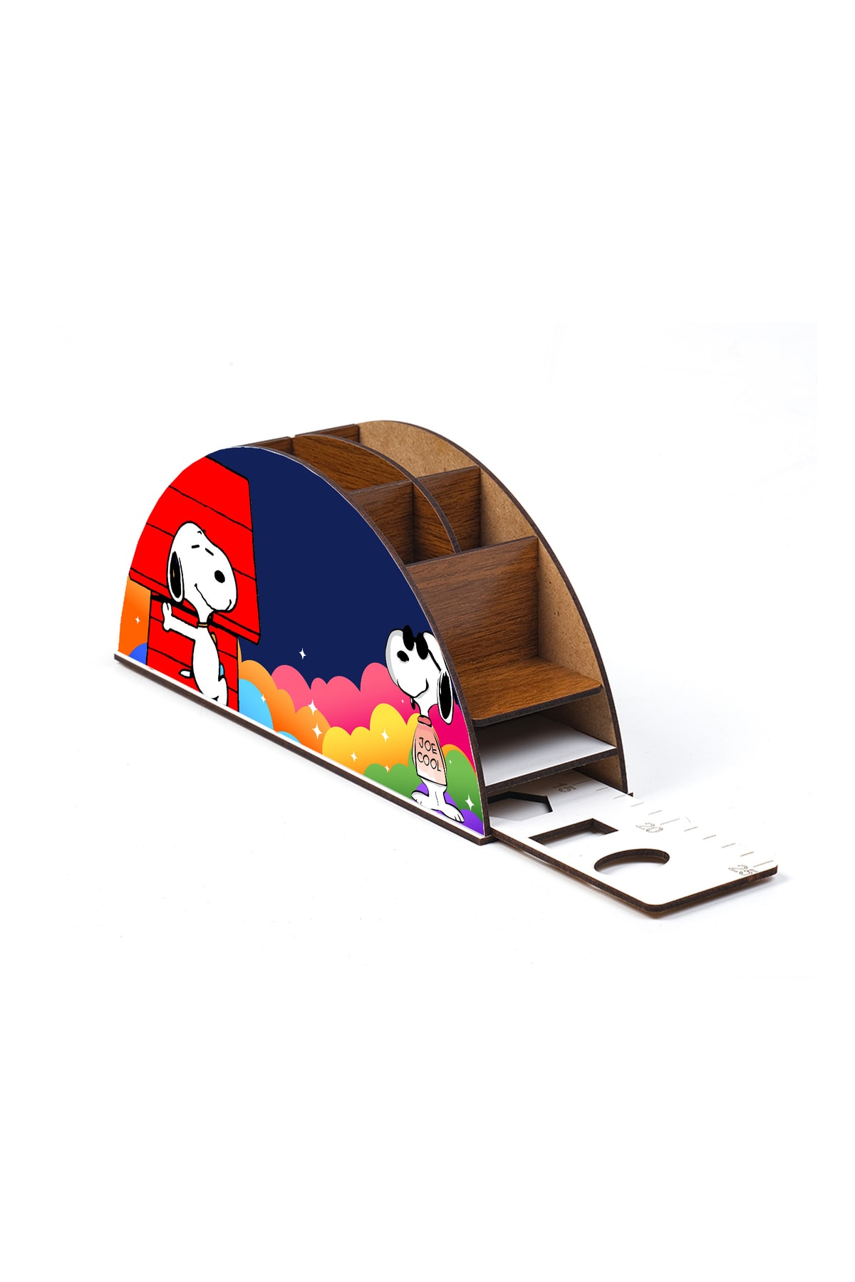 Ahşap Snopy Joe Cool Gökkuşağı Cetvelli Masaüstü Kalemlik Kutu Çocuklar Için Organizer Gk49